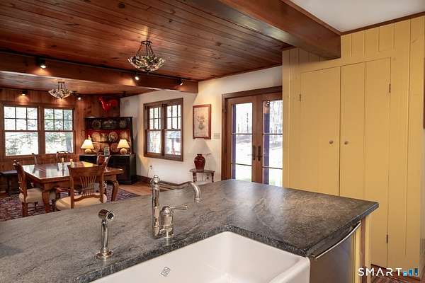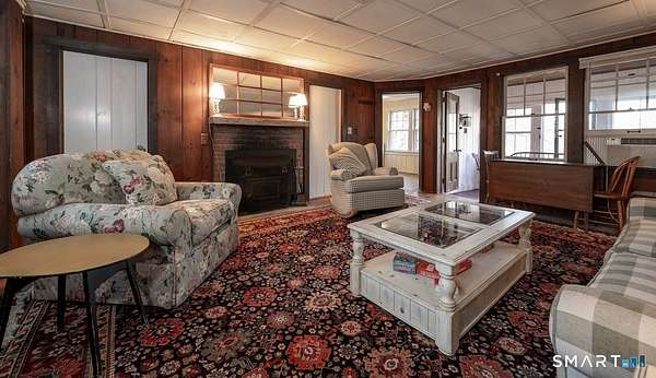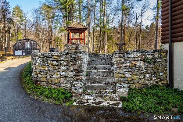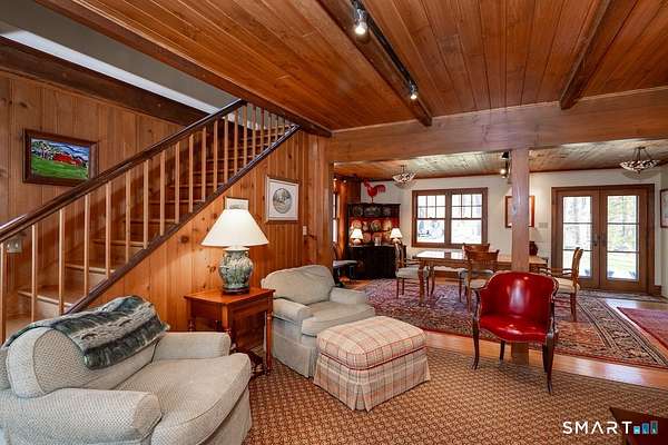 Set along one of Sharon's most scenic country roads, this inviting property offers a rare blend of country charm, flexible living space, and timeless Litchfield County appeal. Anchored by a 1948 main residence and complemented by an original guest cottage and substantial barn, the offering presents a versatile compound ideal for weekend living or full-time retreat. The main house is warm and welcoming, with four bedrooms and three baths, thoughtfully arranged to accommodate both gathering and privacy. The first-floor primary suite allows for easy, single-level living, while the open floor plan creates a natural flow between kitchen, dining, and living spaces. At the heart of the home, a generously sized kitchen island invites conversation and casual entertaining. A screened-in porch extends the living space outdoors, offering a peaceful setting for summer evenings, while a wood-burning fireplace adds a sense of comfort and tradition during cooler months. Just beyond, a classic barn provides two-car parking and ample additional space for storage, workshop use, or creative pursuits. The separate guest cottage, dating to the 1940s, remains a true time capsule-complete with three bedrooms, a full bath, kitchen, and a charming stone wood-burning fireplace. Preserved in its original condition, it offers a unique opportunity for restoration or continued use as a rustic retreat for guests.