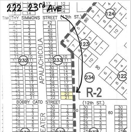 Lots 20&21 are at the corner of Bobby Cato Street & 23rd Avenue. City of Apalachicola has cut road through, and lots are accessible. All lots front 23rd Ave. There is also trail cut in from Timothy Simmons St. Corner. Look for signs