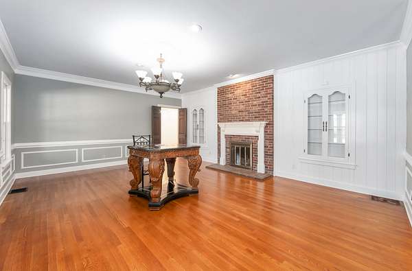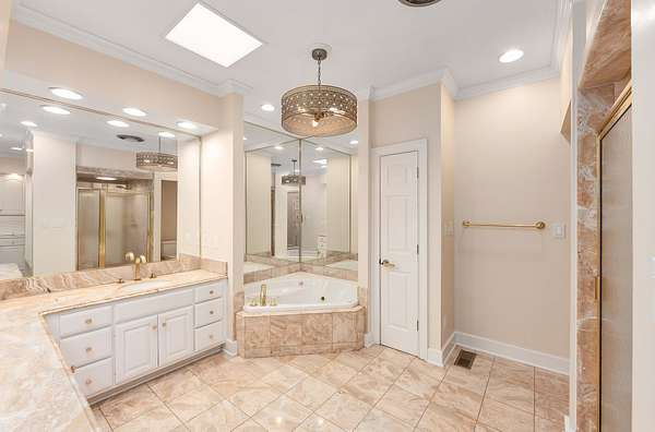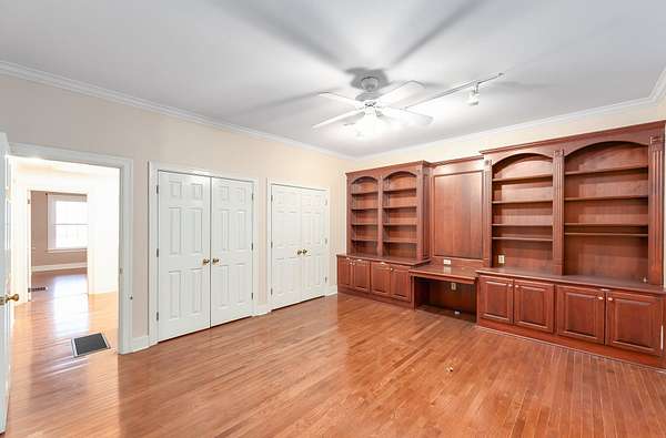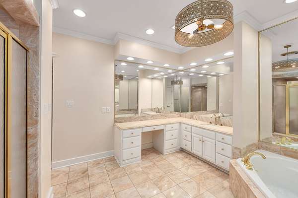 Inside, the single-level layout features five bedrooms and 4.5 baths, including a flexible fifth bedroom that doubles as an office with a private library. The formal living and dining rooms set the stage for elegant entertaining, while the theater and media rooms provide the ultimate relaxation spaces. A craft room, sunroom, wet bar, and built-ins add even more versatility. Storage is abundant, with large closets, basement, attic space, and an optional in-law suite.