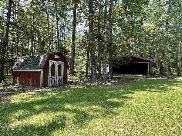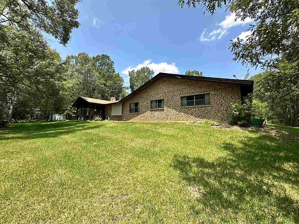Welcome to a stunning example of mid-century modern architecture! This enchanting home, built in 1986, offers a perfect blend of style, space, and functionality on a sprawling 16.54+/- acre unrestricted tract with a timber exemption, ensuring privacy and tranquility. This meticulously maintained residence boasts 2168 sqft of living space, featuring 3 bedrooms, 2.5 bathrooms, a spacious living room, den, formal dining area, and a cozy breakfast room. The kitchen comes complete with a breakfast bar and all appliances included in the sale for your convenience. Step outside to discover a paradise of outdoor amenities, including a huge shed, greenhouse, and two additional storage buildings, providing endless possibilities for hobbies, storage, or even a workshop. The expansive grounds are fenced and densely wooded, encompassing a picturesque pond stocked with catfish and perch, perfect for serene moments of fishing or relaxation.