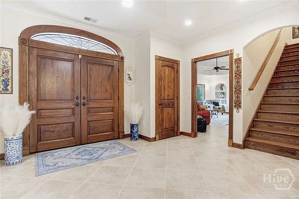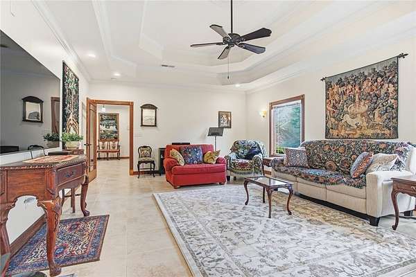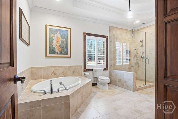 - Attic, Double Vanity, Entrance Foyer, Garden Tub/Roman Tub, Main Level Primary, Separate Shower, Split Bedrooms, Tray Ceiling(s)