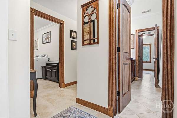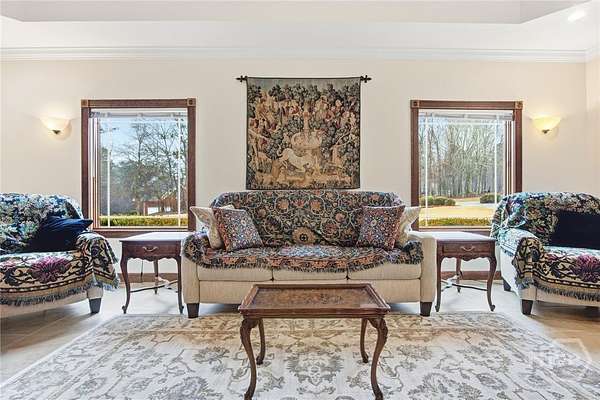Designed for comfort and effortless living, this home showcases quality craftsmanship, upscale finishes, and exceptional attention to detail throughout. Expansive windows and a generous sunroom open to a private walled patio garden. The level lot offers manicured lawn and wooded acreage that extends to the Oconee River, creating a serene and private retreat. A pair of double wood front doors opens to a gracious foyer with a long, welcoming sightline through the main living spaces, the sunroom, and out to the secluded brick-walled garden...an ideal setting for morning coffee or relaxed evening gatherings. Porcelain tile flooring flows throughout the main level, while trey ceilings in every room add architectural depth and understated elegance. The main level is thoughtfully arranged for both everyday comfort and entertaining, featuring a welcoming living room anchored by a fireplace, a flexible room currently serving as a private office, and a serene primary suite. Two additional bedrooms and three full baths complete the main floor, offering convenience and privacy for family or guests. Upstairs, hardwood floors extend through two spacious bedrooms and a full bath, providing inviting accommodations for guests, hobbies, or additional workspace. The kitchen and all baths are finished with custom cabinetry and quartz countertops, creating spaces that are both beautiful and highly functional. Marvin windows throughout the home bring in abundant natural light while delivering exceptional energy performance. Spray foam insulation, a passive radon system, and a central vacuum system further enhance year-round comfort and efficiency. Outdoor living is thoughtfully integrated, with a zoned irrigation system and landscape lighting that highlight the grounds from day to night. The third-car garage, with a 14-foot ceiling, offers added flexibility, and a 15' x 20' garden shed provides generous storage for tools and hobbies. Located just minutes from the energy of University of Georgia, enjoy game days at Sanford Stadium, evenings at the Georgia Theatre, and dining in Downtown Athens...then return home to the privacy and serenity of your own retreat. A rare harmony of vibrant college-town energy and refined everyday living.