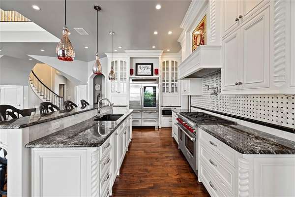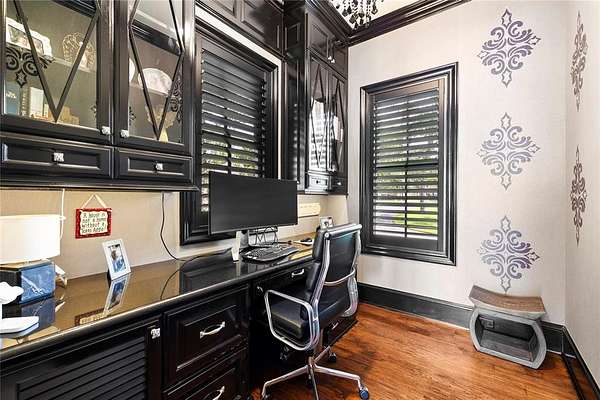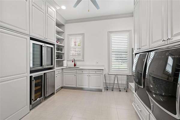 From the moment you arrive, you're welcomed by stately architecture, soaring ceilings, and intricate crown moulding. A handcrafted Swarovski crystal chandelier adds timeless glamour, while the wine cellar and richly appointed main office with custom woodwork elevate the home's luxurious appeal. The layout features a butler's pantry and elevator for effortless entertaining and daily convenience.
