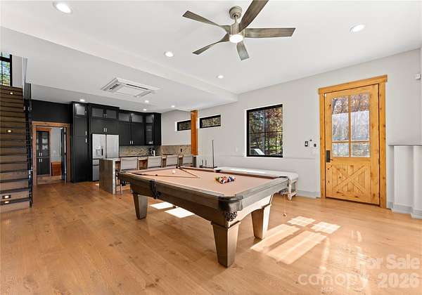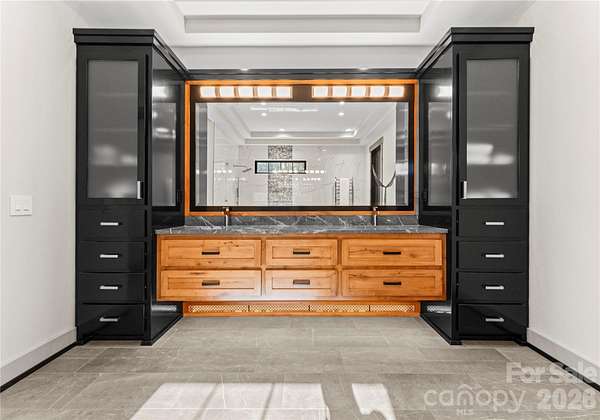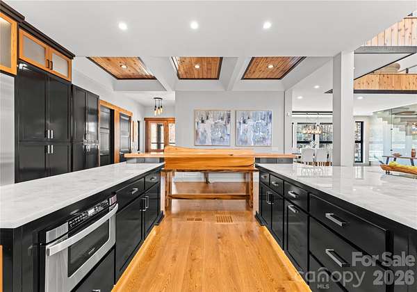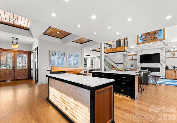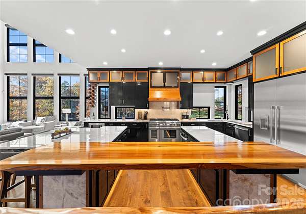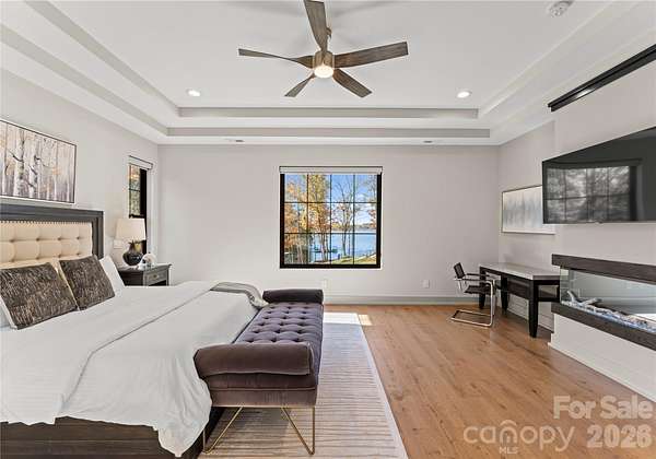 This exceptional waterfront residence is offered fully furnished, providing a seamless, move-in-ready opportunity for luxury lake living. Designed for both impressive entertaining and everyday comfort, the home features elevator access to all levels, expansive lake views from multiple floors, floor-to-ceiling glass, Andersen windows and doors, white oak flooring, refined architectural detailing throughout, and a whole-home water filtration system. The main living level showcases a dramatic great room with a custom fireplace, soaring ceilings with illuminated cupola, cedar-wrapped beams, and walls of glass framing panoramic Lake Norman views. The chef's kitchen is thoughtfully designed with custom cabinetry, quartzite countertops, a live-edge breakfast bar, Thermador Wi-Fi-enabled appliances, pot filler, beverage refrigeration, integrated lighting, and filtered water throughout the home. The main-level owner's suite offers a private lakeview retreat with fireplace, spa-inspired bath, and a striking walk-in shower, complemented by a beautifully designed custom walk-in closet. Upstairs, additional guest suites and living spaces provide flexibility for hosting and multigenerational living, including a well-appointed bathroom with heated towel bar. The finished walk-out basement is ideal for elevated entertaining, featuring a full kitchen with Cafe appliance suite, full bath, and expansive living area that opens directly to the patio and waterfront through oversized sliding doors. A rare amenity is the oversized, extra-deep garage accommodating 5+ vehicles and featuring a private golf simulator, offering a year-round recreational experience uncommon in waterfront homes. Outdoor living is equally refined with a dock featuring a 32-foot slip and lighting, professionally landscaped grounds, shoreline stabilization, in-ground irrigation, and lake-fed irrigation. Canoes convey, completing the effortless lake lifestyle. The home is currently listed on VRBO and other short-term rental platforms, offering a turn-key opportunity for buyers interested in pursuing this avenue. Buyer to verify all short-term rental regulations, permitting, and use requirements with the appropriate governing authorities. A rare opportunity to own a fully furnished luxury waterfront home on Lake Norman, where architectural excellence, recreation, and lifestyle converge.