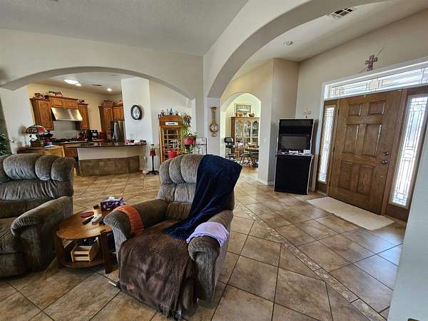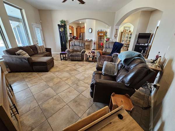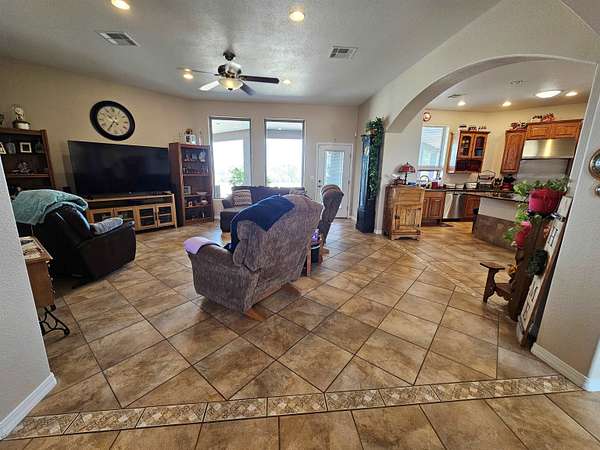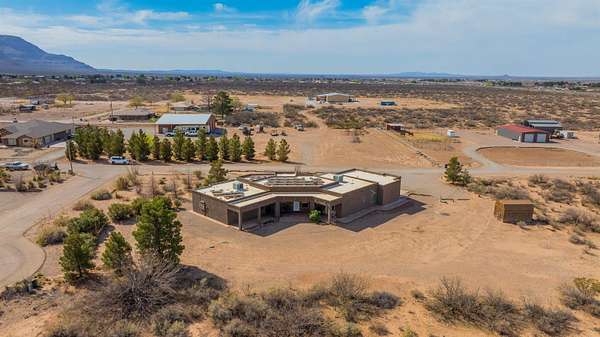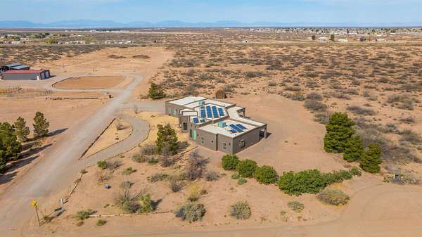 Wonderfully unique New Mexico style home sitting at the end of a dead-end street. This phenomenal house has 3051 heated & cooled square feet, 4/5 bedrooms, 3-1/2 baths situated on 10.355 acres inside the city limits. Very close to the gold course. The open floor plan showcases the oversized living room, beautiful kitchen with all stainless steel appliances plus a separate formal dining room. Walk down the hallway and you'll enter a den with lots of built in shelving plus a closet so this could be your 5th bedroom. Further down the hallway there is a sizeable bedroom with a private full bath. Then two bedrooms that share a full bath In another area of the home you have a half bath, sizeable laundry room. Down the other hallway is the master suite. This spacious retreat offers great lighting, huge walk-in closet plus a bathroom. The master bath with lots of cabinets, double sinks, garden tub, separate walk-in shower and a bidet toilet. That's not all; it's plumbed for central vacuum, has all tile floors, a 3-car garage and solar panels. The solar panels make it affordable to cool over 3000 sq ft. Now that you've read the highlights of this magnificent property, please call to tour through it as this could be the home you really want.
