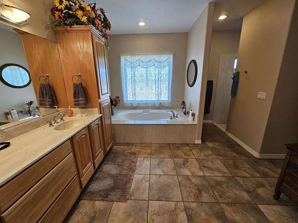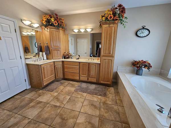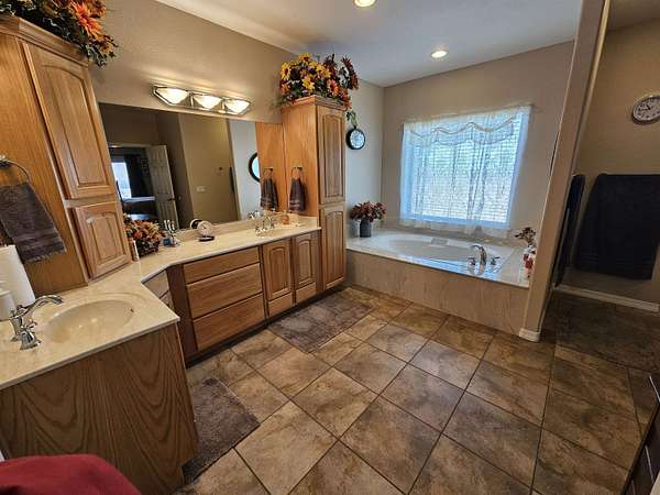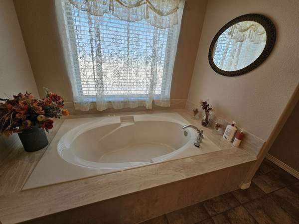 - Carpet, Din RM, Double Sinks, Eat in Kitchen, Flooring, Formal, Garden Tub, Granite Countertops, PRTL, Shower, Slab, Split Floor Plan, Tile Flooring, Tub & Shower, Walk-In Closet, Wndo CVRNG