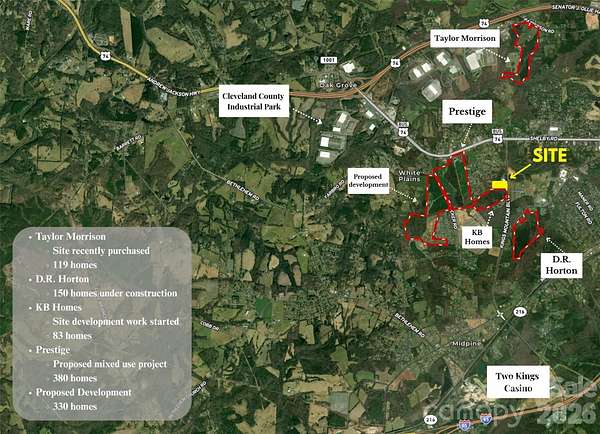Est $2,324/mo+/- 3.0 acre advertisement for undeveloped residential zoned land (SU-RU). +/-220 feet of road frontage on Kings Mountain Blvd. This property has not yet been surveyed for subdivision and would be buyers' responsibility. Centrally located in the City of Kings Mountain: +/-2.5 miles from Two Kings Casino and i85, +/-2.3 miles to Ingles Markets and NC Hwy 74, +/- .5 miles to NC Hwy 74 business. This is a great opportunity to develop very desirable land on a quickly growing corridor between Business 74 and i85. Located on the same road as Two Kings Casino.
