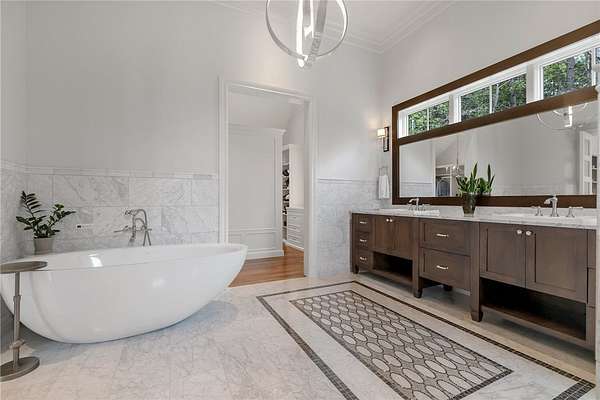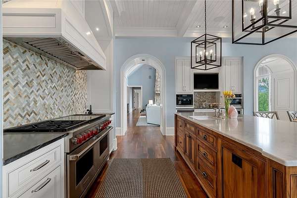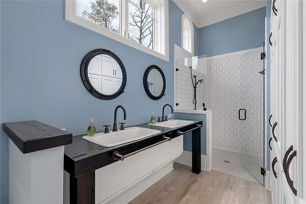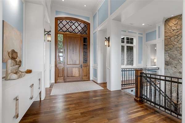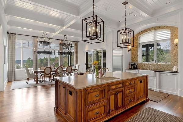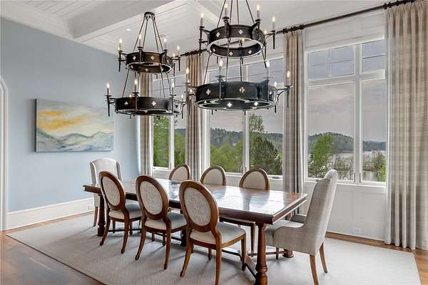Welcome to "Long View". This impressive, one-of-a-kind, custom Dillard-Jones designed and constructed waterfront masterpiece is now available for the most discerning buyer. This lake front estate has 4.40 acres of privacy with spectacular sweeping lake, sunset, and Nicklaus Signature course views. This is the only Reserve property with direct access both to the course, via hole #14, AND to the waterfront, with its covered slip dock. Incorporating five bedrooms and seven full baths, the two and one-half story transitional style residence is uncompromising in every thoughtful detail, including: *select blue thermal Pennsylvania bluestone porch and patio buffed pewter stone *stained northern fir exterior *custom lighting fixtures and railings (handmade, both interior and exterior) by Heirloom Stair and Iron *Tru-slate charcoal tile roof with copper gutters, screens, lightning protection, and European copper knight-style chimney caps *Highlife Collection spa and Swim-Ex indoor pool *signature style custom dock with FloatAir 7000lb front mount lift *ground-source Geothermal energy system *3X22kW Eaton backup generators *Savant home automation system, controlling audio, video, climate and security *Wolf range, separate Sub-zero refrigerator & freezer, Sub-zero undercounter beverage center (2) and wine storage (2), Whirlpool washer/dryer (2), Miele plumbed coffee maker and speed oven, Rohl and Kohler sinks *white honed carrara marble on kitchen island, master closet and bathroom vanities, honed ebony mist granite on kitchen countertops, kitchenette and utility room *Symmetry residential elevator with walnut interior *floor to ceiling custom cut-stone fireplace with artistic detailing *450lb custom made, three-tiered wrought iron candelabra-style remote control chandelier. *solid 3/4" random width walnut floors *custom cabinetry and walnut paneling throughout, by Florez Fine Woodworking *full size, in-home, professional, wide screen, aboutGolf simulator. Beautiful design, intelligent game play, authentic experience. Recently professionally re-decorated, the main floor offers an open and expansive plan, in which towering windows frame captivating views from every location. A retractable-screen porch (with fireplace) is spacious enough for dining, and ideally situated to maximize golf course and lake views, with an enticing backdrop of emerald green Lake Keowee waters. The kitchen is professionally equipped, and designed for entertaining. The master suite, encompassing one wing of the main floor, and separate, main floor guest suite, are spacious yet comfortably inviting. Multiple storage spaces, a pantry, craft room, and laundry room with access to the four-car garage contribute to this clever design, and a talented interior designer's touches are evident throughout. The lower level with 12-foot ceilings throughout is a retreat unto itself. The recreation room with Ann Sacks limestone flooring is accessible by stairs or elevator and offers a kitchenette with fridge, dishwasher, and beverage center, adjacent wine room with reclaimed wine barrel flooring, and a hidden door that accesses a theatre room, offering plush seating, acoustic-enhancing walls, and big screen with 4k projector and concert hall sound provided by Simply AV. A separate, aboutGolf simulator room (widescreen model), recreates 30 iconic courses, for rainy day play. The exercise room contains multiple fitness machines and easy-clean SwissTrax flooring. Additionally, there's an endless indoor pool with underwater treadmill and automatic retractable security cover, which uses current to keep a swimmer (or walker) in one position. The Pennsylvania bluestone exterior terraces are welcoming, with custom wrought iron, gas firepit, and covered-spa relaxation area. Every thoughtful consideration has been given and nothing overlooked at "Long View". This home is conveyed mostly fully furnished in turn-key condition.