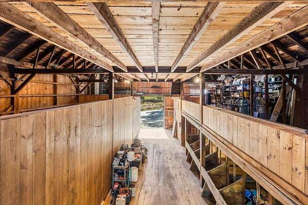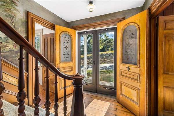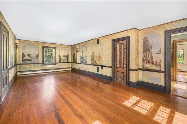 Steeped in history and timeless character, this remarkable New Durham home, The Berry Pike Farm, tells the story of the town itself. Set in the heart of what was once the original town center, the earliest portions of the house and foundation date back to the 1790's, while the home as it stands today was expanded in 1841. Generations of business-minded, civic-spirited families have called it home, shaping not only the property but the community around it. In the 1850's, its halls rang with music, feasts, and dancing as neighbors gathered here in celebration, and today the preserved murals painted by itinerant artists in the Rufus Porter School style still adorn the walls, a treasure over 150 years old. This 4-bedroom, 2-bath residence offers three levels of living, including a spacious sun-filled living room, separate parlor, dining room, two wood burning stoves, and a large studio space off the barn. The attached three-level barn, an awe-inspiring 50'x60' structure, provides endless possibilities for work or creative pursuits. The home sits on 2.45 acres, including a .63-acre lot across the road with a two-car garage, once the site of the historic Shadrack Allard Tavern - remnants of its foundation and chimney still remain. With just 7+/- owners over more than 230 years, each a careful steward of its legacy, this one-of-a-kind property offers not only a grand home but also a living piece of New Durham's heritage. Showings begin at the open house, Saturday 9/6/25.