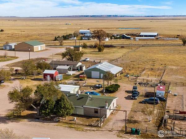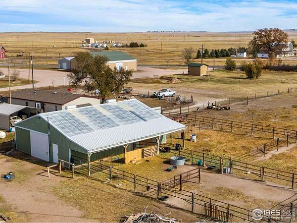 NO HOA or Metro Tax! Excellent affordable horse property with 3 bed, 2 bath ranch home, 1,770 square feet and includes a partial basement. Several recent updates have been completed. The Colorado Low-income Energy Assistance Program (LEAP) installed a new furnace and fully insulated the home. Detached steel framed oversize two-car garage with concrete floor and power next to home. Barn is 26'x48' for hay, equipment storage or animals and has 9'x15' tack room towards the front of the building. A 10' overhang comes off of the south side of the shop/barn, providing great cover from the weather for livestock in the four well-designed livestock pens. In the center of the livestock pens is an automatic waterer providing year around water. The 150'x300' horse arena has been set up for roping with a calf roping chute, return alley and collection area. The south end of the arena has a 12'x24' loafing shed for additional shelter and two pens for livestock. The large pasture is well fenced, hot-wired and Mapped acreage is about 17 acres but county records shows 11.07 acres.