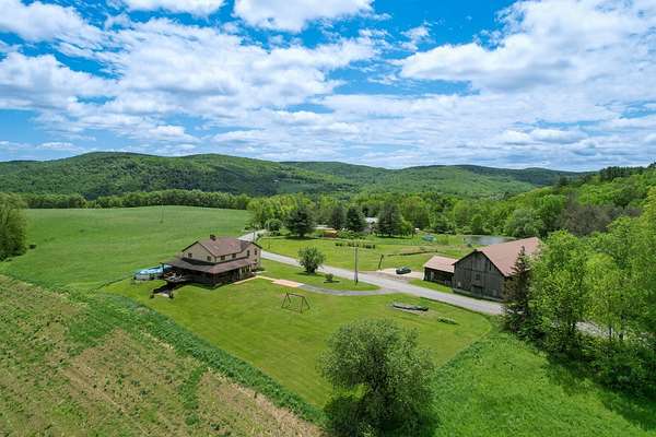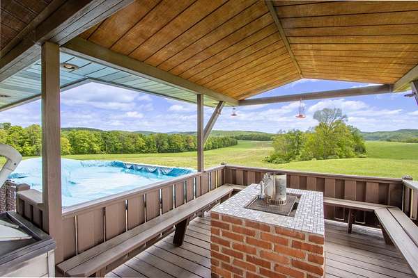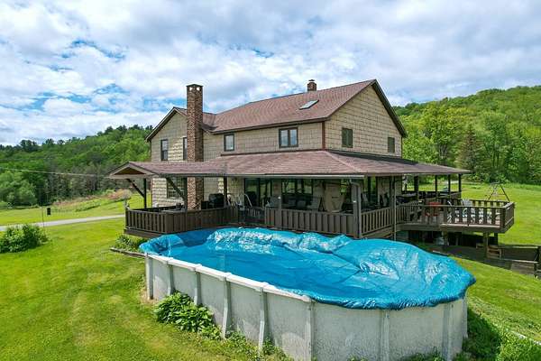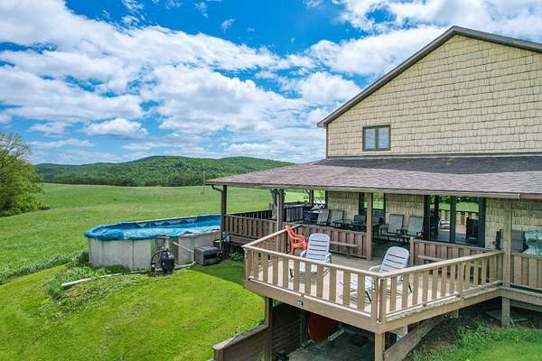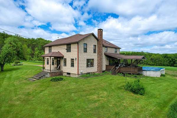 Nestled between Deposit and Windsor, just minutes from Route 17, this beautifully maintained 4-bedroom, 1.5-bath farmhouse is a rare blend of rustic charm and modern updates-all framed by some of the most AMAZING VIEWS in the area. Set on a peaceful stretch of LOW-TRAFFIC countryside, the property features a barn with an attached garage, offering plenty of space for hobbies, storage, or even animals. Inside, the heart of the home is a thoughtfully designed kitchen, complete with a center island, tile flooring, and tile countertops. A large sun-filled living room, a separate dining room or family room, half-bathroom and a laundry room complete the first floor. Upstairs contains four bedrooms and a full bathroom complete with a standing shower and soaking tub, along with skylights in the primary bedroom! The home has seen numerous updates over the years while retaining its timeless farmhouse character. You'll enjoy fresh spring water throughout the house, adding to its pure, natural feel. Step outside to a wrap-around covered deck that's perfect for entertaining or relaxing while taking in panoramic views of rolling hills and open skies. Built-in benches and an outdoor BBQ grill/firepit create an ideal setting for gatherings. Add an ABOVE-GROUND POOL to the mix, and you'll surely never leave! Don't miss out on such an amazing location!