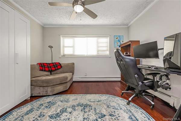 Unit 1H is a sun-filled apartment featuring a spacious living room with French doors that open to a large bonus room--perfect as a home office or den--along with a comfortable dining area. This "Just Right" unit offers a generously sized bedroom, updated bathroom, and walk-in pantry. With ample storage and true move-in-ready condition, it's ideal for first-time buyers, commuters, or anyone seeking a low-maintenance lifestyle.