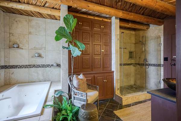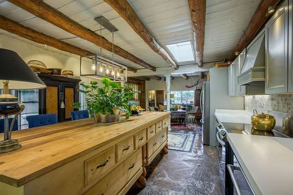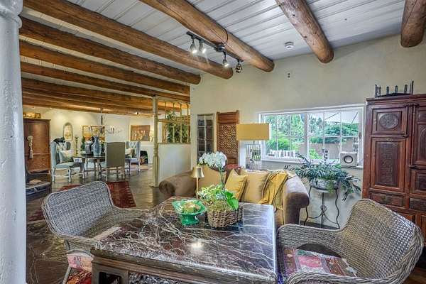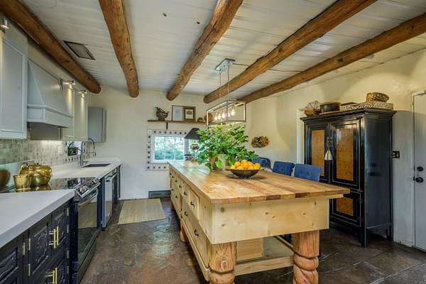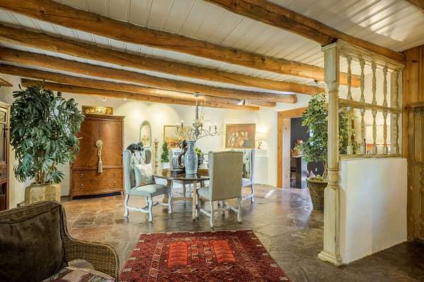 222 Highway 240, Ranchos de Taos - A Timeless Adobe Hacienda formerly home to the Griffin family of Griffin Wax Co. Steeped in history and authentic Southwest charm, this stunning 4,030 sq. ft. adobe hacienda is a rare find in the highly desirable and historic Cordillera area of Ranchos de Taos. Original portion of building is said to have be built in the 1800's several additions have followed, the largest in 1949 and 1977. This 3-bedroom, 3.5-bathroom hacienda sits on 3.34 serene acres, surrounded by mature trees, a traditional low adobe wall, and the natural beauty of the high desert. The acequia flows just near the back porch allowing for the tranquil sound of water to be enjoyed and used to keep the land lush. From the moment you step inside, the home's character is unmistakable. Thick adobe walls, built-in storage, nichos, and five fireplaces infuse warmth and tradition throughout. The spacious living room features a dramatic pitched ceiling with dark wood beams and a classic kiva fireplace, while the rest of the home boasts lower ceilings with rustic log beams. The primary suite is a true retreat, complete with its own fireplace, an ensuite bathroom with a walk-in shower and separate tub, and an oversized closet with built-in storage. The home has undergone extensive updates while maintaining its historic integrity. A new Navien on-demand hot water system serves the radiant heating in the primary suite, and laundry room, while a brand-new 60-gallon water heater provides hot water to the kitchen and guest baths. The property has also received significant roof improvements, ensuring its longevity and durability. Beyond the main residence, an original studio with electricity that offers endless possibilities as a creative workspace or private office. Additional outbuildings provide storage and functionality, while the sprawling acreage offers ample space for horses or future expansion. With easy access to the heart of Taos and the iconic Ranchos de Taos Plaza, this extraordinary home embodies the essence of New Mexico's history, craftsmanship, and timeless appeal. If you've been searching for an authentic adobe estate with character, history, and modern conveniences, look no further-this is the one.