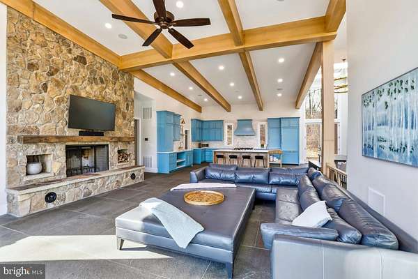 A rare opportunity to own a one-of-a-kind, custom-built six-bedroom, five-and-a-half-bath waterfront home set on nearly three acres. Designed for year-round river living, the property offers sweeping water views, direct access to a 12-mile stretch of deep water, and a thoughtfully planned layout ideal for both everyday living and entertaining. The riverfront is fully improved and built for recreation, featuring a two-tier concrete seawall, private boat ramp, custom floating dock, expansive concrete recreation area, lighted pavilion, and IPE decking and stairs with integrated LED lighting. Additional highlights include a sunken firepit with seating, rope swing, and dedicated electrical service supporting waterfront lighting and amenities. Completed in 2023, the main residence blends striking architecture with modern smart-home functionality. Expansive windows and oversized sliding glass doors frame river views from both levels, while 17-foot ceilings, radiant heated floors, zoned climate control, and integrated lighting and sound systems enhance comfort throughout. The open main living spaces flow seamlessly, anchored by a custom kitchen with commissioned cabinetry, premium appliances, stone countertops, a statement island, and a walk-in pantry. The great room centers around a wood-burning fireplace clad in locally quarried stone, opening to dining and entertaining areas designed to maximize the water views. The primary suite enjoys a private river-view balcony, spa-inspired bath, and dual walk-in closets with custom built-ins. Three separate bedroom wings provide privacy across all six bedrooms, with well-appointed baths throughout. Additional features include a spacious laundry room, laundry chute, elevator rough-in, and a heated lower-level garage accommodating multiple vehicles. A whole-house generator connected to a privately owned underground propane tank ensures peace of mind. Also included is a separate two-story guest cottage, built in 2001 and maintained in excellent condition, offering flexible space for guests, extended family, or private retreat use. The main level welcomes you with a large open living area filled with natural light from abundant windows, creating an airy and inviting first impression. Upstairs, an open living space flows into the kitchen and includes one bedroom and a full bath, providing comfortable, self-contained accommodations with a sense of privacy from the main residence. Ideally located for both privacy and accessibility, the property offers a peaceful riverfront setting while remaining convenient to nearby towns, shopping, dining, and commuter routes. Easy access to major roadways allows for a manageable commute while still enjoying the tranquility of waterfront living-an exceptional balance of seclusion, recreation, and everyday convenience.
