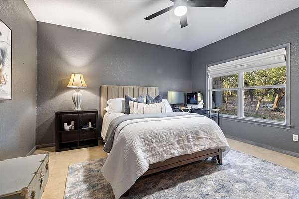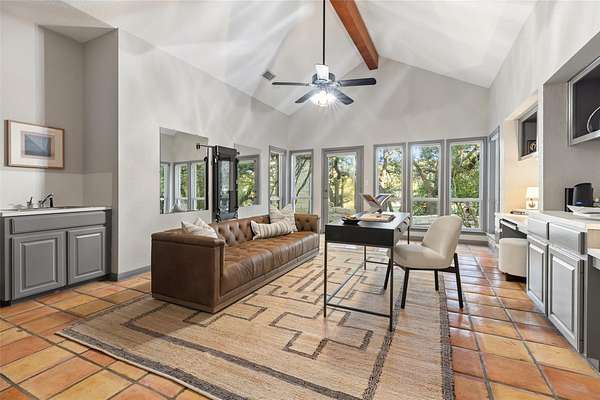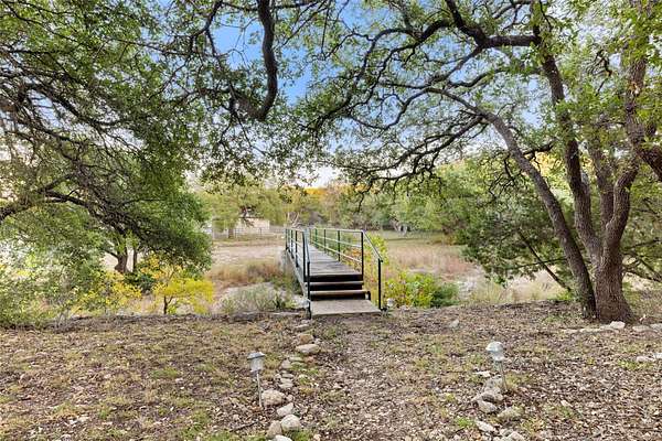 Welcome home to creekside living nestled under majestic oaks in Wimberley Texas. This gated 18 acre ranch home is a true showstopper that you do not want to miss. Built in 1992 with luxurious upgrades over the years mark this property as a rare opportunity. The sprawling 5,656+/-sq.ft. interior offers flexible living spaces that are sure to please. A gallery style foyer welcomes you into the main living anchored by a stone fireplace and huge windows under a breathtaking wood beam cathedral ceiling. The spacious kitchen has granite counters, center island with a raised bar, stainless appliances, large pantry, built-in desk plus a sunny breakfast room. Entertain on a grand scale at the game and media rooms with indoor/outdoor living on the multi-level patios under a huge tree canopy. The media room can easily convert to an in-law suite with its separate entry, walk in closet and plumbed bar. 4 of the 5 bedrooms have en-suite baths plus ample closet space. The primary even has its own wing offering a sitting room/study, large bedroom plus a gorgeous bathroom with soaking tub, separate shower + a big walk in closet. Storage is everywhere including the oversized 3 car garage and 10 x 16 barn for lawn equipment plus there is a covered area for a tractor/RV. Stocked wet weather creek w/blue gill, catfish & pass + 5 foot deep swimming hole & you can kayak most of the time. Take the pedestrian bridge over to the raised garden w/wildlife fence & fully irrigated, horse corral, barn with stalls and tack room. The whole property has lots of wildlife & interesting elevation changes with trails to explore. Secondary building site on top of hill with utility pole installed. Utility info: 3 HVAC units, 2 water heaters(1 electric, 1 commercial tankless), well services garden & coral, public water to residence, septic system. Come enjoy downtown Wimberley just 10 minutes away. It's all here waiting for you to call it "Home."