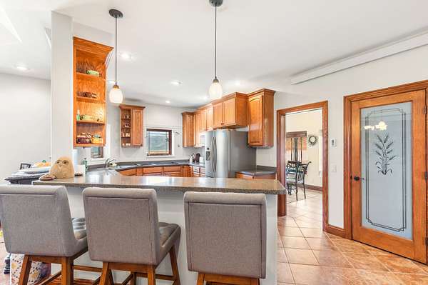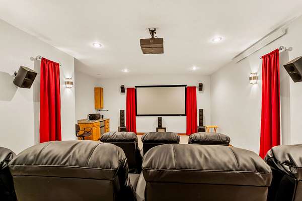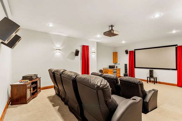 The interior of the home combines tasteful and thoughtful finishes with a very livable design and layout. For example, the voluminous executive office/library provides an ideal workspace. The enclosed sunroom and eat-in kitchen give ample space for cooking, dining, and just relaxing. For those who enjoy entertaining, the downstairs includes a lounge area with wet bar and a walk-out patio, providing a seamless transition to an outdoor living area. Also on the lower level, the theater room offers a perfect setting for movie nights with family and friends.There is storage galore throughtout, from a large pantry and cold storage to very generous closets in each room.