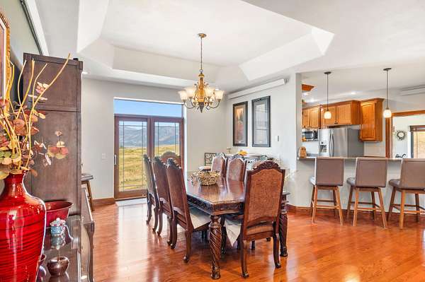 Experience unparalleled beauty and tranquility in this magnificent custom home, offering some of the most captivating views in all of Star Valley, Wyoming - spanning from Alpine to Afton. This 40-acre fenced property is ideal for horse enthusiasts, featuring rolling pastures and a substantial barn or shop for animals and/or equipment. The 4-bedroom, 5-bathroom home boasts beautiful vistas in almost every room, and the expansive windows flood the interior with natural sunlight. Custom high-end finishes and a thoughtful design make it a perfect space for owners and guests, each enjoying privacy and ample areas for gathering. The lower level includes a great room flowing out into a scenic outdoor-entertaining area.