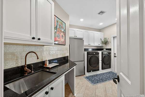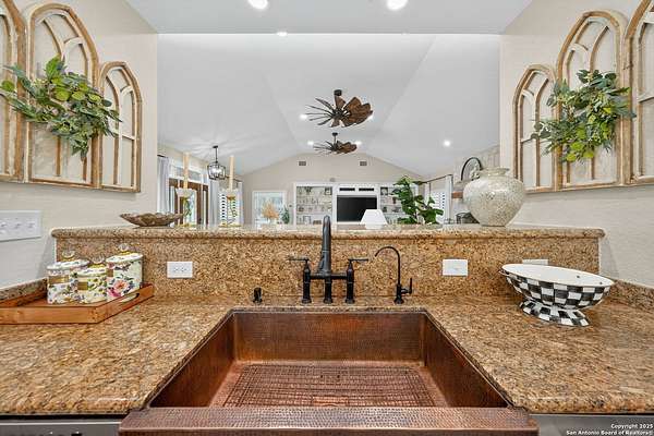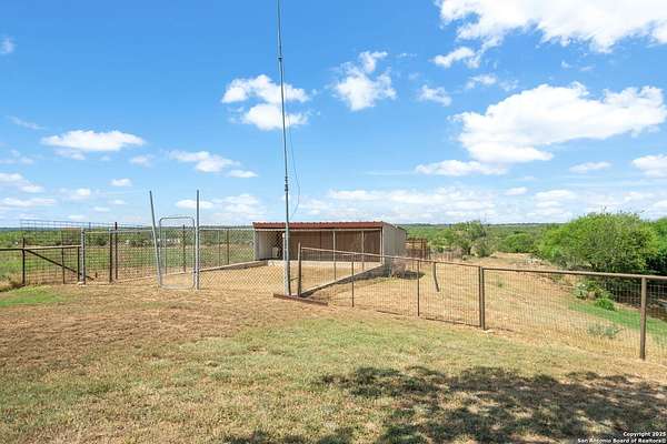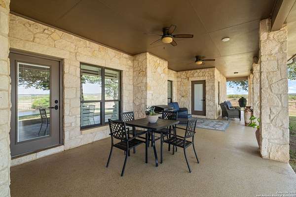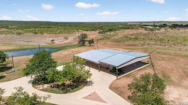 Discover 48 acres of quiet country living just minutes from Castroville in the sought-after Medina Valley ISD. Located less than 6 miles from Castroville and only 30 miles from San Antonio, this property offers the perfect setting for a homestead, hunting retreat, or weekend getaway. A gated entrance with a concrete drive leads to the beautifully remodeled 3,400 sq. ft. rock home featuring 3 bedrooms, 3.5 baths, two spacious living areas, an office, and a stone fireplace. The back porch is the ideal place to unwind and enjoy stunning sunset views over the spring-fed pond. The landscaped, fenced yard is maintained with a sprinkler system. The property also includes a large metal barn with a workshop, three roll-up doors, a walk-in cooler and meat processing room, RV hookups, and a 1,300 sq. ft. guest quarters with 1 bedroom and 1 bath. For those with livestock or 4-H/FFA projects, the ranch is equipped with indoor and outdoor pens along with a dedicated wash room for animals. A Case tractor and shredder are negotiable with the sale. This ranch combines modern comfort with practical amenities, offering a rare opportunity to own a turnkey property in a prime location.