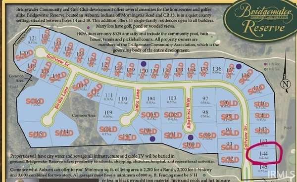 Est $675/moPond lot located within Bridgewater Reserve on Hole #15 of Bridgewater Golf Course. Nice lot for a daylight basement. One story home minimum sq ft 2,200. Two Story min. 3,000 combined plus an 800 sq ft garage. Low HOA dues with access to a community pool, tennis/pickleball courts.