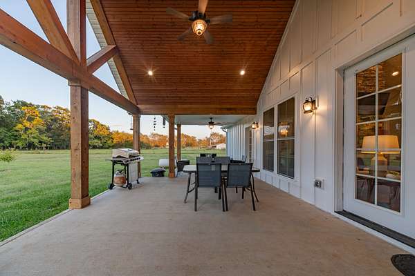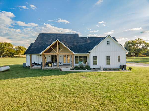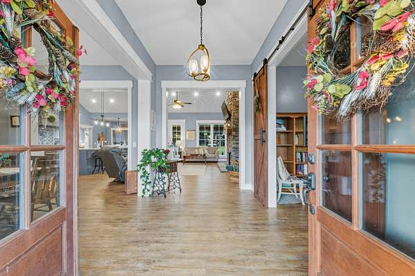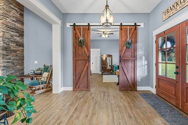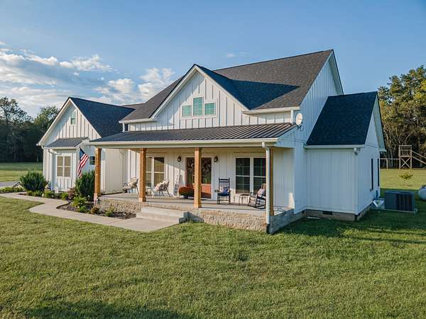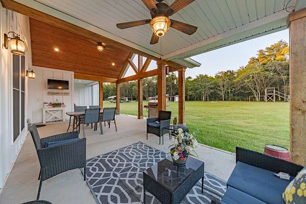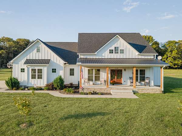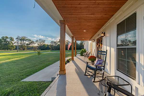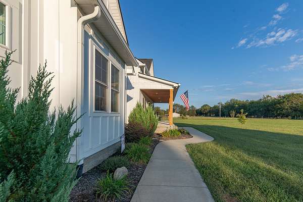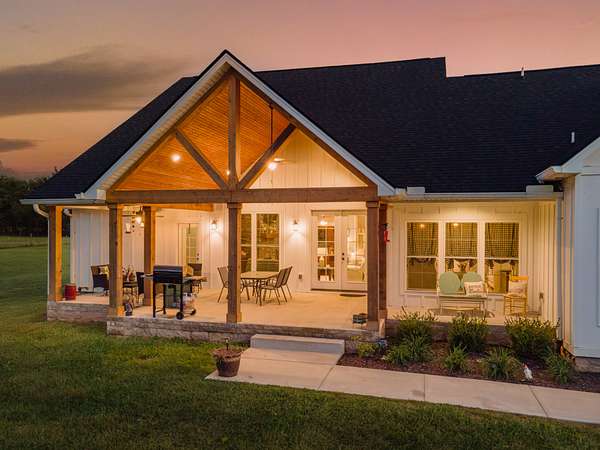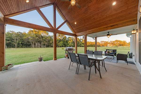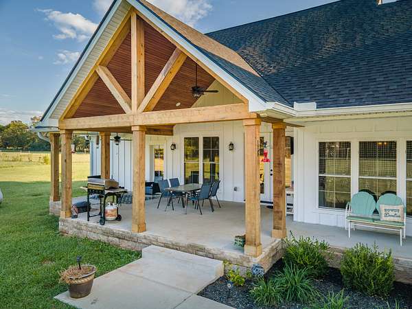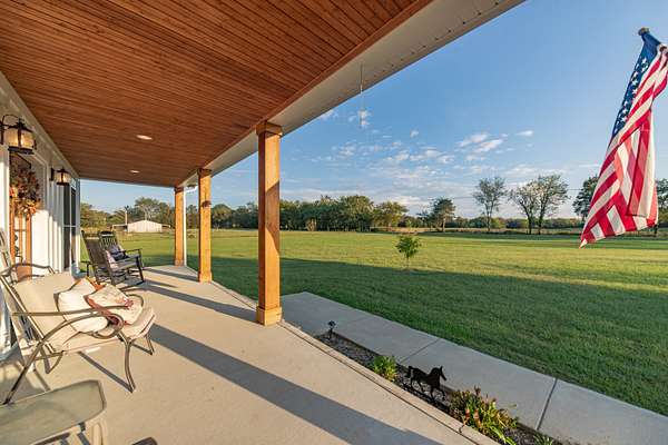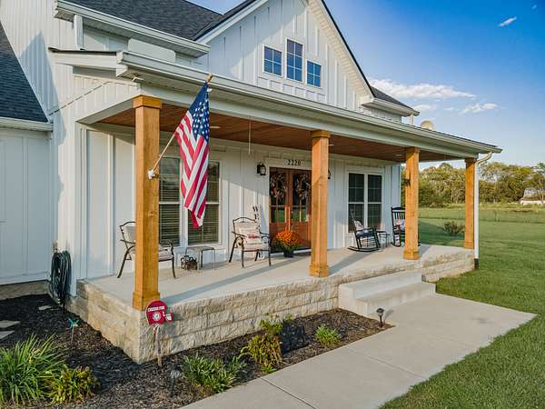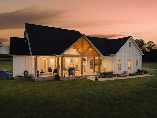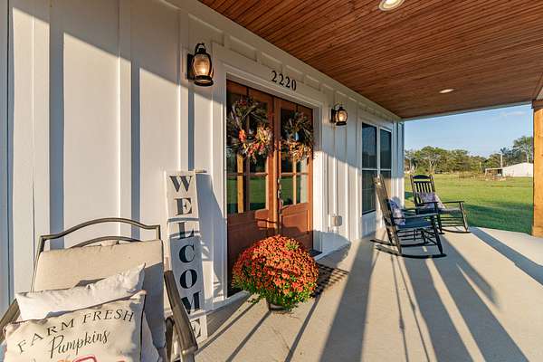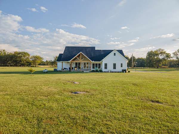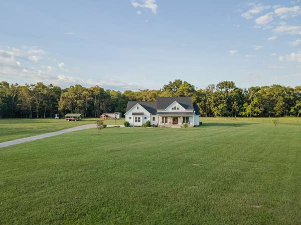 Privacy, peace and quiet are what you'll find out here and you're going to notice the exhale of calm that comes with it. This Hardie Board siding home is not even 5 years old yet, custom built in 2021 on just over 5 perfect and flat acres with beefed up floors and walls. Built right with 6" exterior walls, insulated floor system constructed with less than 8 feet between piers, tankless water heater, and tongue and groove porch ceilings! The home is wired with a 400 amp service to allow for a dedicated 200 amps for your future detached shop as well as an additional water shut off valve for plumbing the future shop as well. Inside you will find that natural light floods this home from all angles. The gas log, stacked stone fireplace is an absolute statement in the living room, reaching to top of the 15' ceilings! The open concept lends itself to entertain seamlessly from your kitchen, equipped with custom locally crafted cabinetry, 10' island with cabinet doors on both sides, 36" gas range and oven and lovely custom hood vent. Storage is not an issue here as the kitchen offers plenty of cabinetry and there is also a walk in pantry, as well as walk-in closets with built ins. Break bread one of your 4 porches, eat-in breakfast nook or formal dining room! Enter your primary suite to a showstopper of a walk in dual sided shower with niches and frameless glass door, water closet, built in hamper and double vanities! The first floor has three bedrooms and two full baths with one half bath, upstairs is the fourth bedroom with walk in attic space for future expansion if desired later on. Outside, you have all the space one needs for animals or an outdoor oasis of a pool one day! The custom chicken coop and run are a highlight, keep your feathery friends safe and sound so you can collect their eggs and enjoy watching them from your porches. Full upgrades list in media and photos!