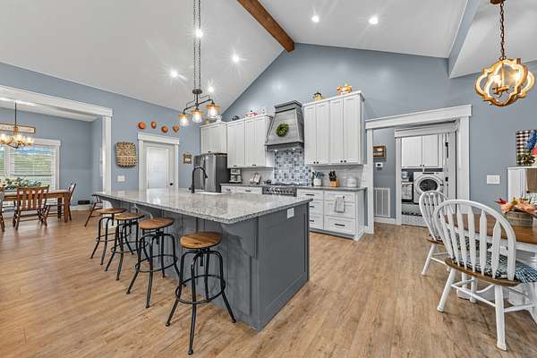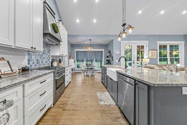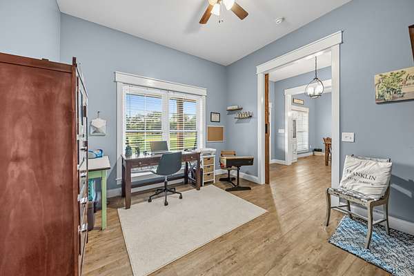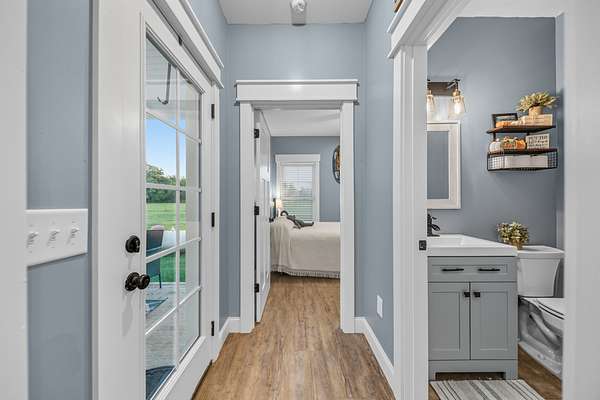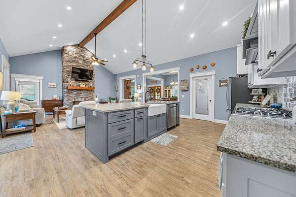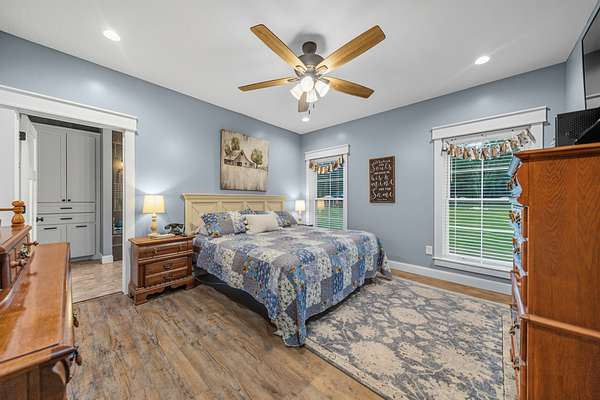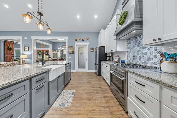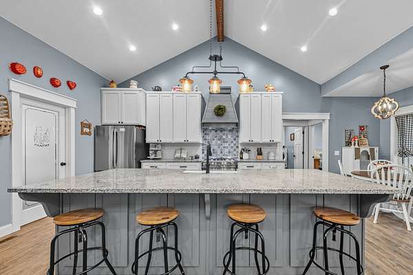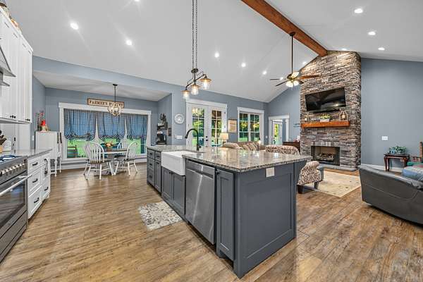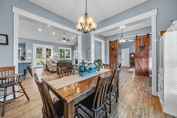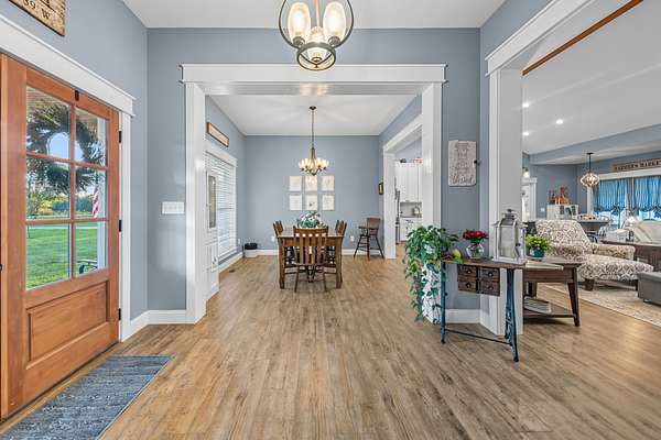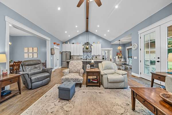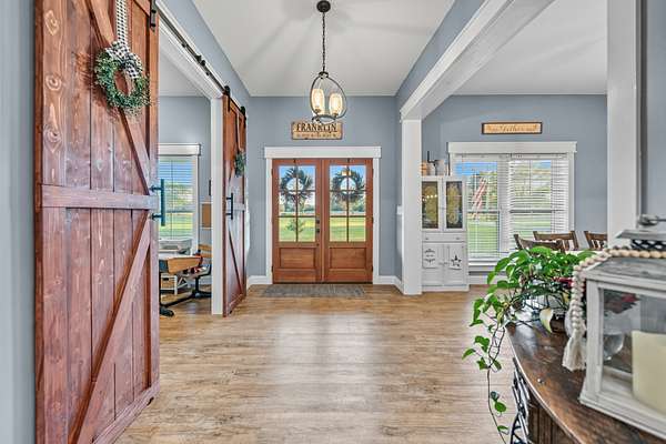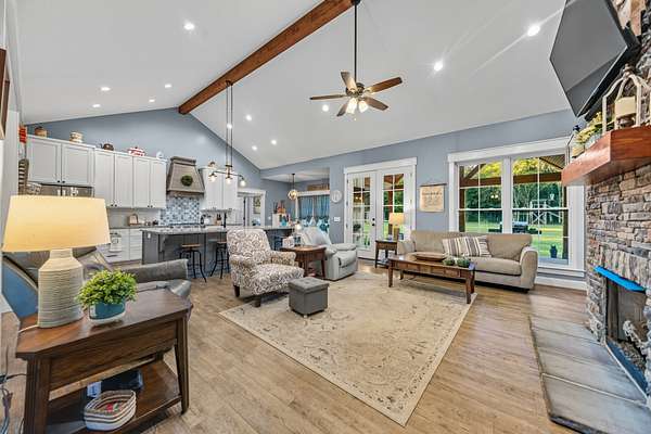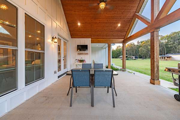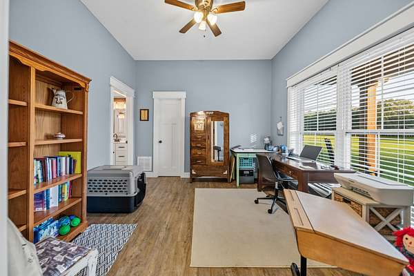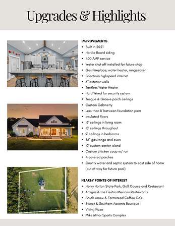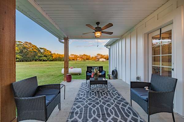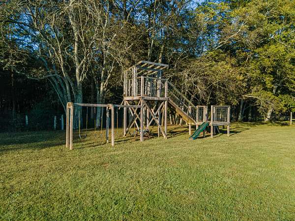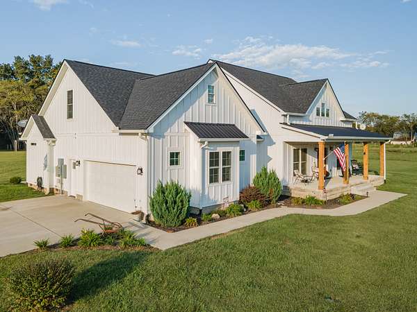 Privacy, peace and quiet are what you'll find out here and you're going to notice the exhale of calm that comes with it. This Hardie Board siding home is not even 5 years old yet, custom built in 2021 on just over 5 perfect and flat acres with beefed up floors and walls. Built right with 6" exterior walls, insulated floor system constructed with less than 8 feet between piers, tankless water heater, and tongue and groove porch ceilings! The home is wired with a 400 amp service to allow for a dedicated 200 amps for your future detached shop as well as an additional water shut off valve for plumbing the future shop as well. Inside you will find that natural light floods this home from all angles. The gas log, stacked stone fireplace is an absolute statement in the living room, reaching to top of the 15' ceilings! The open concept lends itself to entertain seamlessly from your kitchen, equipped with custom locally crafted cabinetry, 10' island with cabinet doors on both sides, 36" gas range and oven and lovely custom hood vent. Storage is not an issue here as the kitchen offers plenty of cabinetry and there is also a walk in pantry, as well as walk-in closets with built ins. Break bread one of your 4 porches, eat-in breakfast nook or formal dining room! Enter your primary suite to a showstopper of a walk in dual sided shower with niches and frameless glass door, water closet, built in hamper and double vanities! The first floor has three bedrooms and two full baths with one half bath, upstairs is the fourth bedroom with walk in attic space for future expansion if desired later on. Outside, you have all the space one needs for animals or an outdoor oasis of a pool one day! The custom chicken coop and run are a highlight, keep your feathery friends safe and sound so you can collect their eggs and enjoy watching them from your porches. Full upgrades list in media and photos!