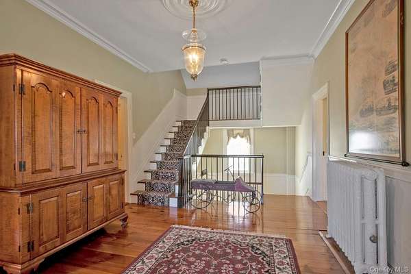 - Chefs Kitchen, Crown Molding, Eat-In Kitchen, Entrance Foyer, Formal Dining, Kitchen Island, Original Details, Pantry