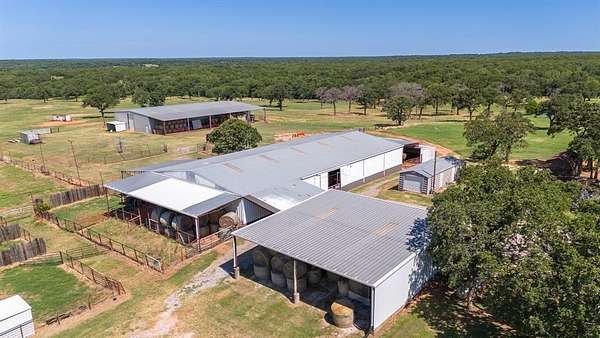 Whether you are an avid equestrian enthusiast seeking the perfect facility or looking to start your own horse business, this property offers everything you need and more. 23.90 (mol) beautiful acres with 2 spring-fed ponds, 4BR/3BA home, storm cellar, 4-car detached garage, horse barn equipped with 11 spacious stalls, cattle working area, feed room, tack room, dedicated office space, wash rack(on separate well), ample hay storage space. Outside paddocks that are connected to the lighted outdoor arena, 60' x 125' building (perfect for indoor arena) with 25' overhangs on both sides for hay and equipment storage. 2 spring-fed ponds, shade trees. Buildlings are all metal frame for durability and longevity. Property is on paved road with easy access to OKC and Norman. Contact us today to schedule a private tour and make your equestrian dreams a reality! Drone video available upon request.