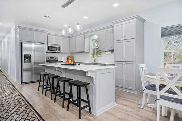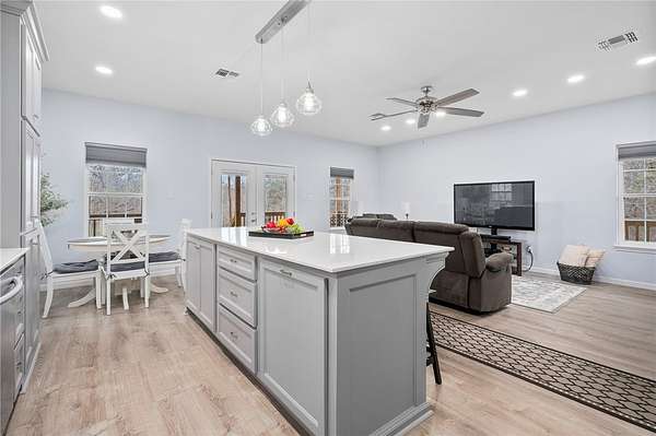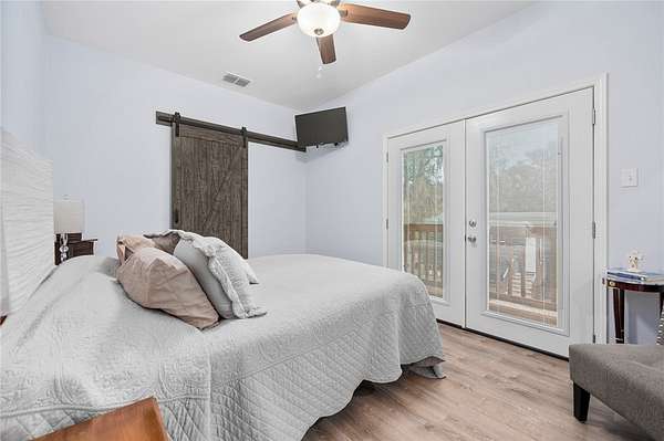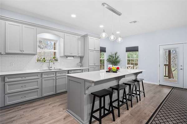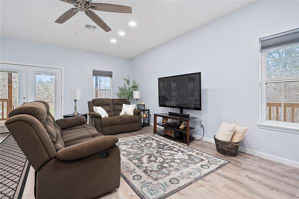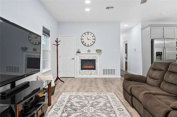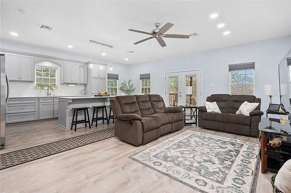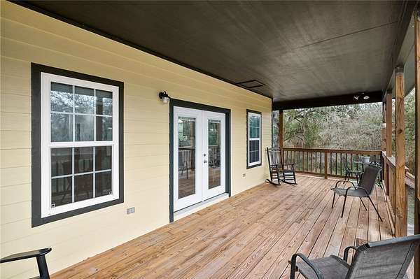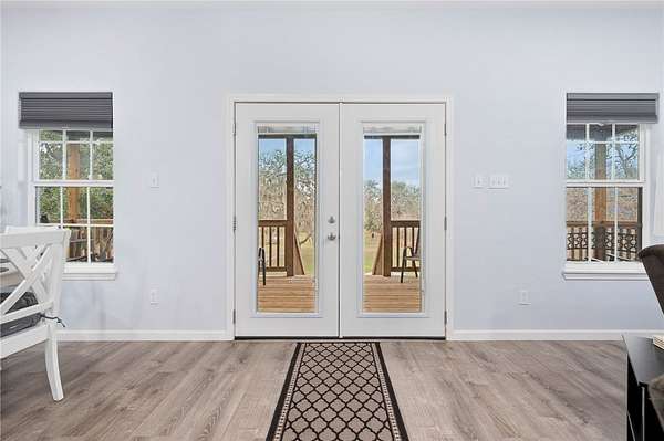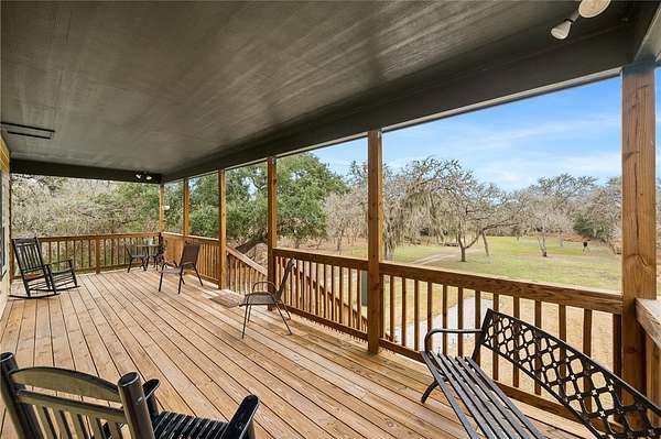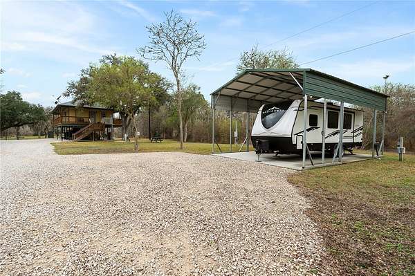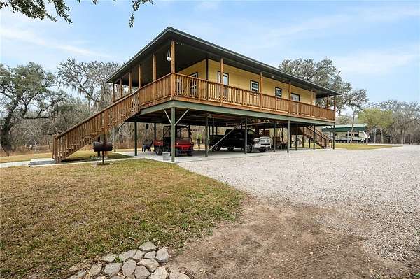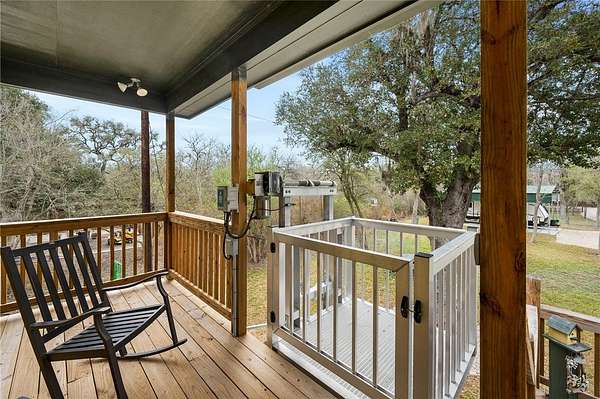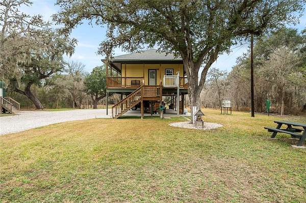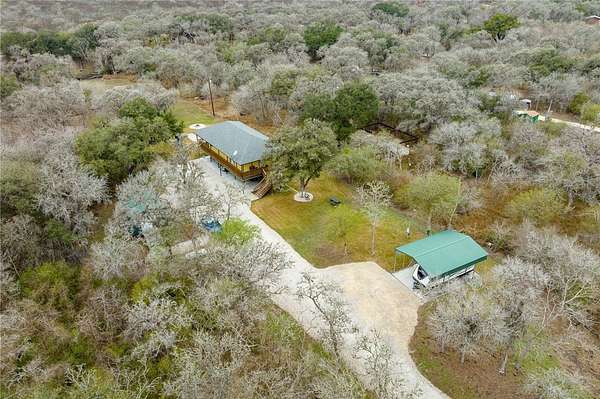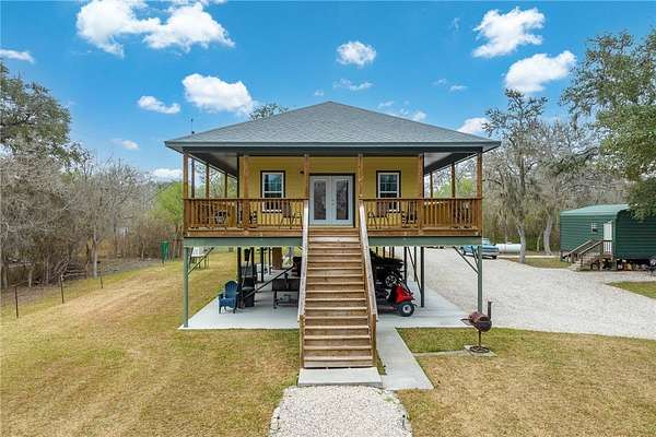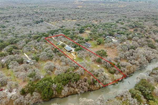 Charming Riverfront Retreat! Enter through the electric gate and escape to the beauty of the countryside with this stunning 2-bedroom, 2-bathroom riverfront home nestled on 2.82 acres along the Nueces River and approximately 180' of river frontage. This immaculate home boasts 1,152 square feet of comfortable living space, offering the perfect blend of relaxation, modern convenience and adventure. Step inside to this inviting open-concept living, dining and kitchen area, perfect for entertaining. The spacious kitchen boasts a large island with seating for 4, ample cabinet space, tiled back splash and all the appliances are included. Cozy up by the electric fireplace in the living room. Enjoy the beauty of luxury plank flooring throughout the home and windows that provide natural light and scenic views. Outdoor living is just as impressive! Featuring a wrap around porch, a fire pit for evenings under the stars, river views and abundant wildlife from your doorstep. There's a covered RV pad, perfect for your recreational vehicles or hosting guests. The lower level of the home provides parking, or another entertaining space. Ideal for hosting parties, watching a game, or grilling. The home is equipped with a Generac generator, ensuring uninterrupted power, a cargo lift for added convenience and a water treatment unit. A large storage shed provides ample space for tools and outdoor gear. It has an easy access ramp and a roll up door on the side. Whether you're fishing, kayaking, or simply enjoying the serene surroundings, this property is an ideal retreat for nature lovers. Make this your week end get a way or riverfront residence! Don't miss out!