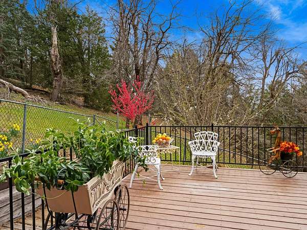 Beyond the deck, a small orchard produces seasonal fruit—pear, apricot, plum, and cherry trees—while the fenced area provides a safe space for pets to roam. The forest gently unfolds beyond the back of the property, inviting quiet walks and peaceful reflection among the oaks. Despite the privacy, this mountain retreat is close to everything Palomar Mountain has to offer—world-class stargazing at the Palomar Observatory, hiking in Palomar Mountain State Park, fishing at Lake Henshaw, and the historic charm of Julian just a scenic drive away.