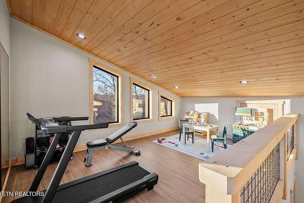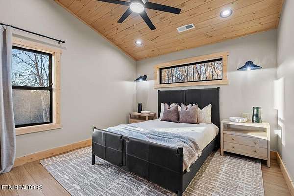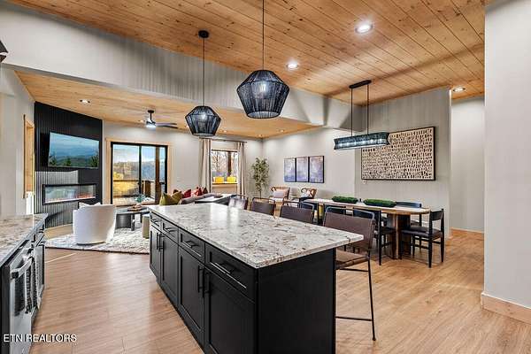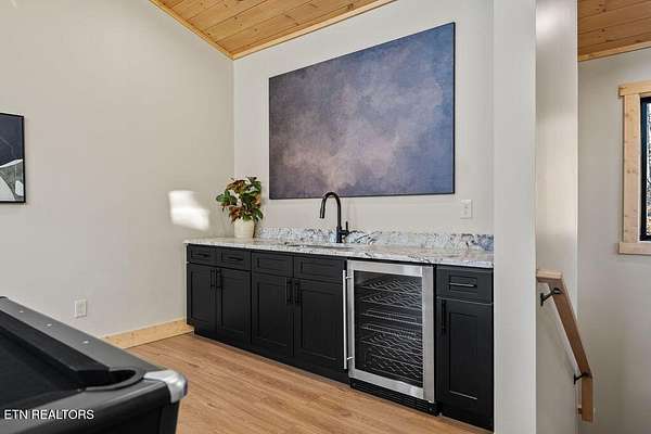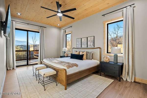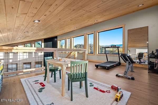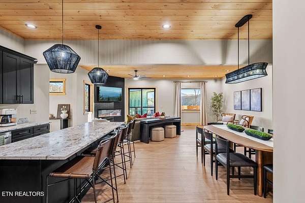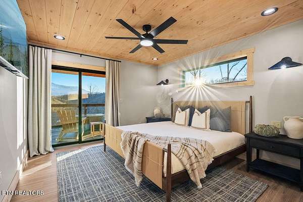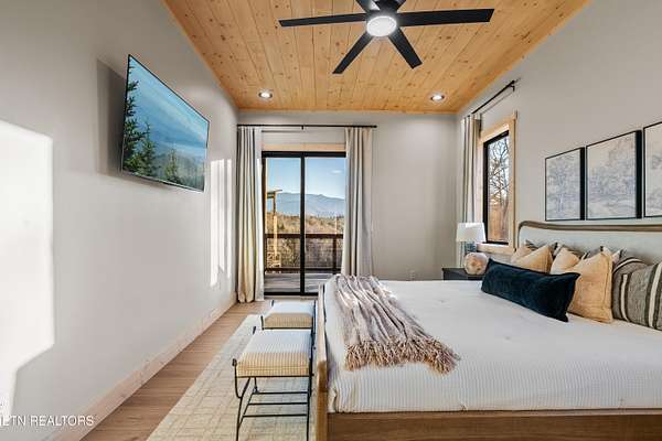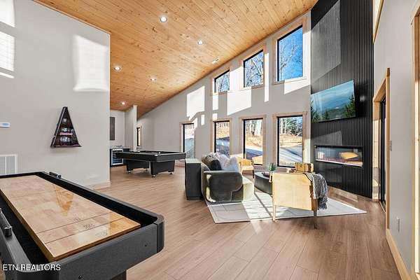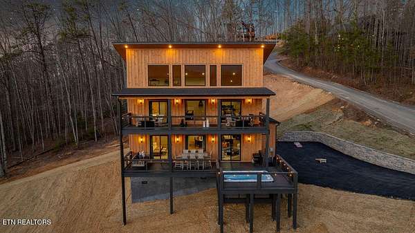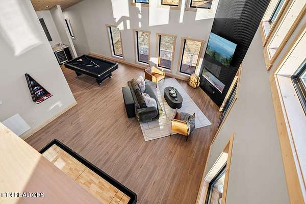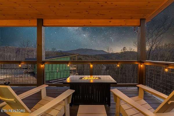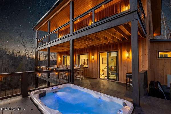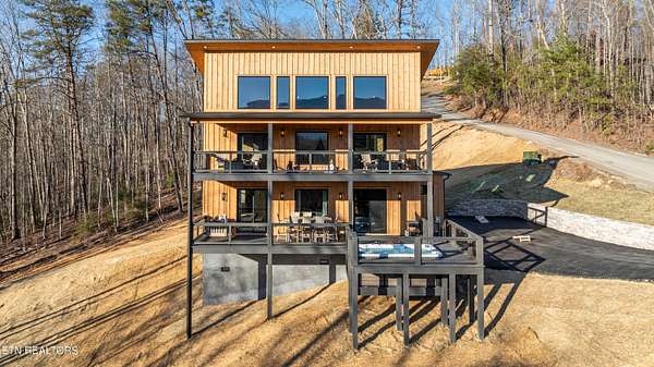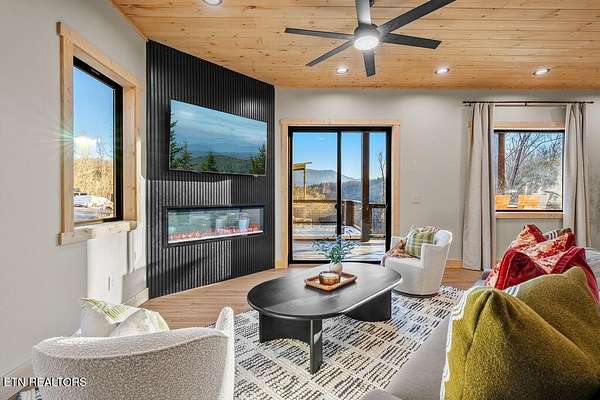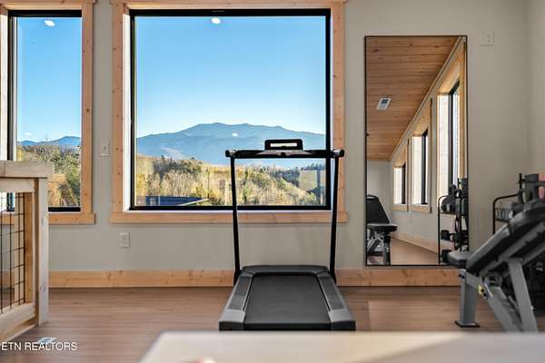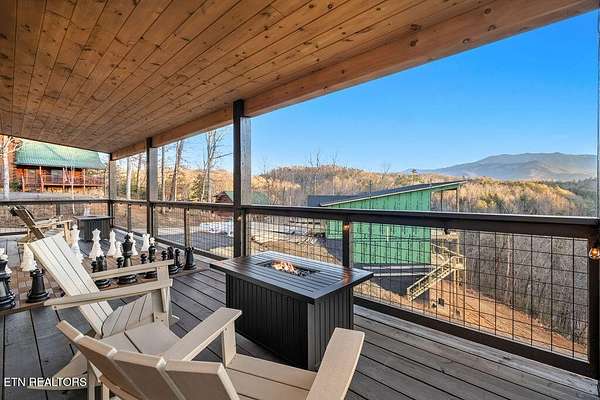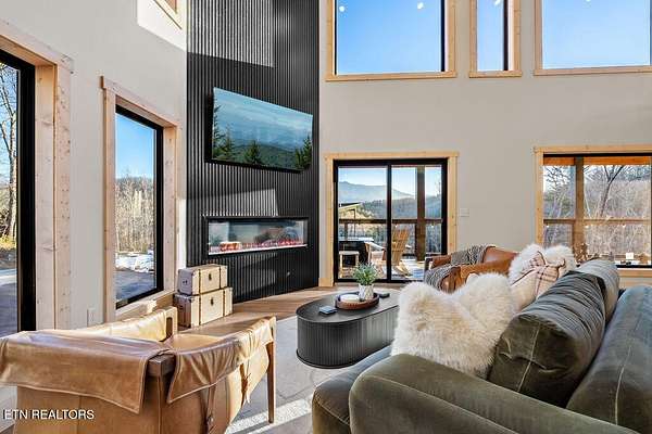 BRAND NEW & FULLY FURNISHED LUXURY 4 BEDROOM CABIN IN THE SMOKY MOUNTAINS WITH AMAZING VIEWS & A SWIM SPA! Prepare to be in awe of the mountain views, ease of access with no steep roads, and the absolute elegance & craftsmanship this property exudes! This stunning cabin has been professionally designed and offers unparalleled luxury complete with higher end furnishings with 2 king size beds and 2 queen beds. The double deck on the back is the perfect spot to drink your morning coffee or soak in the swim spa and get lost in the views of the Smoky Mountains! The main level features a spacious layout perfect for gathering, soaring tongue and groove ceilings, floor to ceiling electric fireplace in the heart of the space, a custom kitchen that comes fully stocked, primary suite with custom tile walk-in shower, laundry area, and half bath. Upstairs includes numerous windows to delight in the gorgeous views while playing in the game room with wet bar and living area with a second floor to ceiling fireplace, three additional bedrooms, and two full baths with custom tile work. The loft offers huge windows with breathtaking views, workout equipment and creative play, great for everyone! Located in a quiet area, yet close to Gatlinburg & Pigeon Forge, this cabin and its views are sure to be a guest favorite! Buyer and/or buyer's agent to verify details. Rental projection in documents tab.