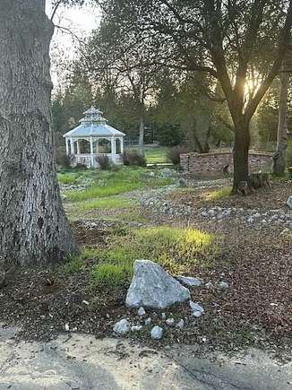 Beautiful Victorian southern country elegance offers complete privacy, two minutes away from downtown Palo Cedro, w/grocery shopping/dining out, 5 minute drive to Shasta Counties most sought after middle school and high school... Foothill HS and Junction MS! 10-15 minutes drive to the two hospitals and most Doctors offices. Mature landscaping and trees surround this stunning home. First floor Primary Suite and office, guest bedrooms on 2nd floor. Attached 3 car garage AND a large 1,000 sq. ft. detached shop/garage. There is even a covered RV-port. The setting literally resembles a movie set with a storybook Gazebo patio and beautiful custom brick bridge crossing a seasonal stream. Almost 4000 sq. ft., 4 bedroom, 4 FULL baths + Office AND even a large BONUS ROOM/Media Room w/wet bar above the garage. Plumbing is stubbed in for an extra bathroom in the Bonus Room if necessary. There is a beautiful gas powered fireplace in the Great Room w/breathtaking 17 ft. ceilings and custom Hunter Douglas blinds throughout the home. Whole house fan, central vacuum system, and TONS of storage throughout the home. An entertainer's dream home! Granite counter tops in the gourmet kitchen with double oven, new refrigerator, commercial six burner stove top, w/pot filler, large pantry, custom cabinetry, center island w/additional sink and tons of storage, large country style breakfast room w/built-in buffet and gorgeous backyard views, breakfast bar, Beautiful solid oak wood flooring throughout all heavy traffic areas. Built-in entertainment units, book shelves throughout. Primary suite bath features two his and her's closets, a walk-n shower, old fashioned claw bathtub his and her's vanities and separate water closet. Primary Suite has it's own entrance onto the back patio and its own private gas powered fireplace. Several windows in the Primary Suite make it feel like a vacation retreat. The spacious guest suites are upstairs with incredible views of the grounds and two Ensuite bedrooms. The fully covered front porch is the full length of the house to take in the tranquil views of the private paved driveway which winds down from the stunning gated entrance, and a view of the custom walking bridge leading to a beautiful storybook gazebo. The seasonal creek that winds through the property is the cherry on the cake. The sound of the creek winding through the property begs for several hammocks placed strategically throughout the clusters of beautiful mature trees on the property. The perfect wedding venue or Bed & Breakfast. OWNED SOLAR w/average $28 a month PG&E electric bill! Back up generator kicks on immediately if there is a power outage. Two 125 gallon propane tanks and one 1,000 gallon tank if needed. Private single user well AND it's on Palo Cedro sewer, so there is no septic system to deal with. Plenty of room for a large additional outbuilding if there was a need for an extra structure for an ADU, barn, toy storage, car collectors, tractors, RV garage, business, etc. Horseshoe driveway encircles the house so extremely easy in and out for all of your guests. A rare find for sure, and best of all it's being offered under $1M!