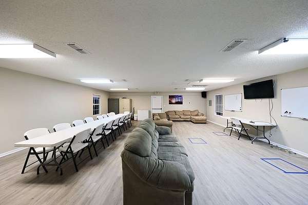 Located on 6.902 acres in Bainbridge, this exceptional multi-use commercial property offers outstanding versatility, visibility, and room to grow. Constructed with low-maintenance brick and vinyl and maintained in excellent condition, the property is move-in ready for a variety of uses with minimal modification. Formerly operated as a church, the layout easily adapts to a daycare, professional office, medical practice, school, or training facility. The property benefits from approximately 6,800 vehicles per day in traffic count, providing strong exposure, along with ample road frontage and space for future expansion. The grounds feature a beautiful park-like setting shaded by grand, mature oak trees, creating a welcoming environment for clients, staff, or students. There are 30 on-site parking spaces, along with convenient double-door entry at both the front and rear of the reception area. Inside, the main 60' x 33' auditorium boasts a vaulted ceiling and offers flexible use as a training center, warehouse space, or can be built out for additional offices. Adjacent to the auditorium are two 10' x 12' offices and a 9' x 10' room, previously used as a sound booth, easily convertible into storage, an exam room, or additional office space. The property also includes a spacious 14' x 19' break room complete with a full kitchen, ideal for staff use. Three former classroom and nursery areas provide additional flexibility for executive offices, resource rooms, or collaborative workspaces. Large restrooms accommodate both staff and guests comfortably. A separate, fully finished 28' x 30' building is connected to the main facility by a covered breezeway, offering excellent potential as a warehouse, workshop, or additional storage. Conveniently located just 1.4 miles from US 84 Bypass and only 6 minutes to downtown Bainbridge, this property combines accessibility, adaptability, and charm—making it a prime opportunity for businesses or organizations seeking a well-maintained, expandable facility in a highly desirable setting. Agent-measured square footage. Buyer must verify exact heated/cooled area.
