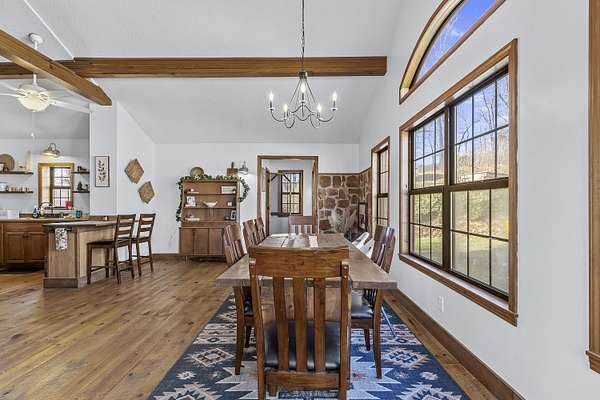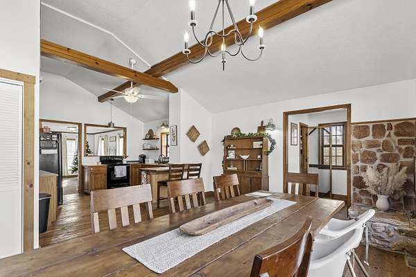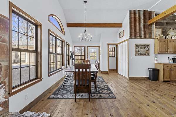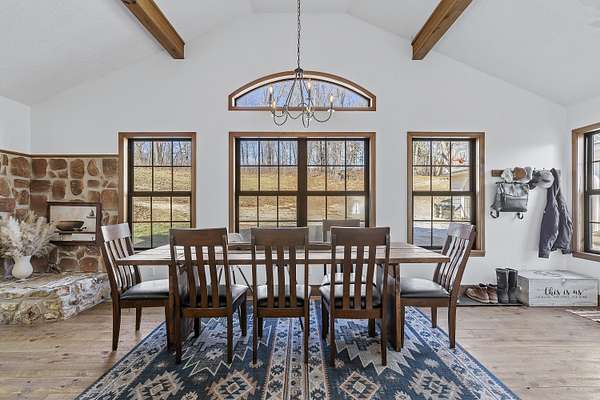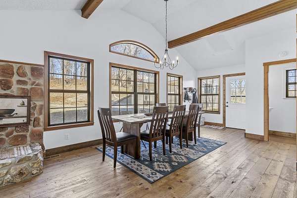Est $1,272/moCharming stone exterior home set on 4.62 peaceful acres, offering the perfect blend of character and country living. Step inside to large open-beam cathedral ceilings in the kitchen and dining area, creating a warm and welcoming space for gatherings and entertaining. Home features 3 spacious bedrooms and 1 and 1/2 bathrooms. Charming features are found throughout this very loved home. Outdoors, enjoy room to roam with a detached two-car garage, large machine shed, chicken coop, and an outdoor wood-burning furnace--ideal for hobbyists, homesteaders, or those seeking a self-sufficient lifestyle. A truly special property with endless possibilities!