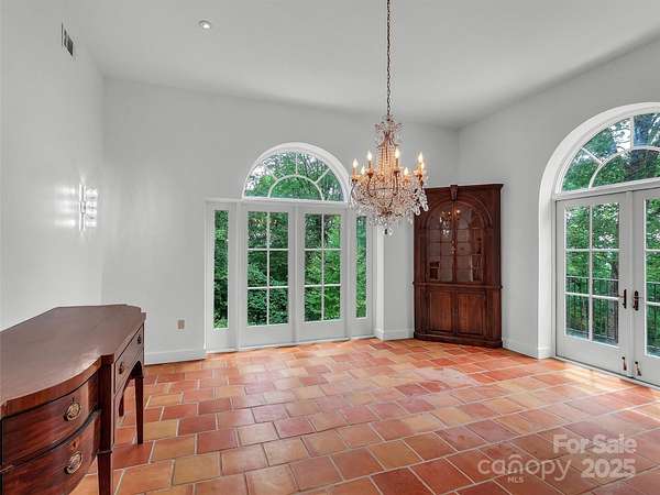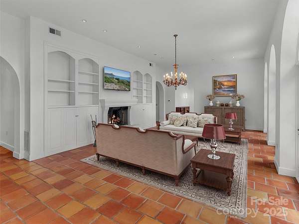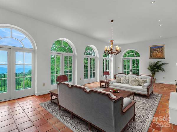 Prepare to witness a residence that defies expectation. This is not merely a home; it is a private mountaintop fortress-the rarest find in the highest privately-owned, gated community east of the Mississippi. Engineered for eternity, this architectural marvel is constructed with 13-inch thick, steel-reinforced insulated concrete walls and floors. This is a level of construction reserved for absolute security and enduring silence. Step inside, where soaring 12-foot ceilings and antique chandeliers create a romantic, grand scale. Every window is a frame for a breathtaking panorama, but the true spectacle begins at the gourmet chef's kitchen and formal dining space. The entire second level is dedicated to an unrivaled Primary Suite Sanctuary, a private world accessible by elevator. This lavish expanse features dual spa-like bathrooms, two warming fireplaces, private laundry, and dual office spaces with dedicated fiber optic internet. Ascend further to the upper-level suite, which grants private access to the majestic rooftop terrace-the ultimate vantage point to claim your view. Below, find a self-contained, fully-equipped apartment perfect for an in-law retreat or a high-end short-term rental. Finally, step off your land and directly onto the famed Mountain to Sea Trail, surrounded by protected conservation land and perched directly above the Blue Ridge Parkway (BRP). This is a one-of-a-kind property that offers unparalleled security, unyielding luxury, and a view that will stay with you forever.