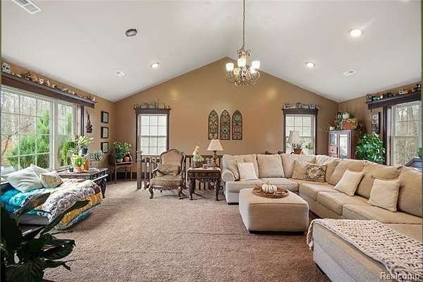 Set on a breathtaking ten acres of mature woods, this exceptional property offers a rare blend of privacy, natural beauty, and comfortable living. Meandering trails wind through the trees, inviting you to explore the abundant wildlife and take in the stunning views that surround the home. Thoughtful outdoor features such as raised bed gardens and an above-ground pool make the grounds just as enjoyable as the interior, providing endless opportunities for relaxation, recreation, and connection with nature. Inside, the home offers an impressive amount of versatile living space, including seven bedrooms--one of which can easily serve as a dedicated game room, creating a flexible six-bedroom layout tailored to your lifestyle. The primary suite feels like a peaceful retreat with its soaring vaulted ceiling, complemented by a luxurious primary bath featuring a rejuvenating Jacuzzi tub. Upstairs, refinished antique trim and additional vaulted ceilings bring warmth, charm, and timeless character to the living areas. This property is truly a one-of-a-kind haven, perfect for anyone seeking space, serenity, and a beautiful place to call home.
