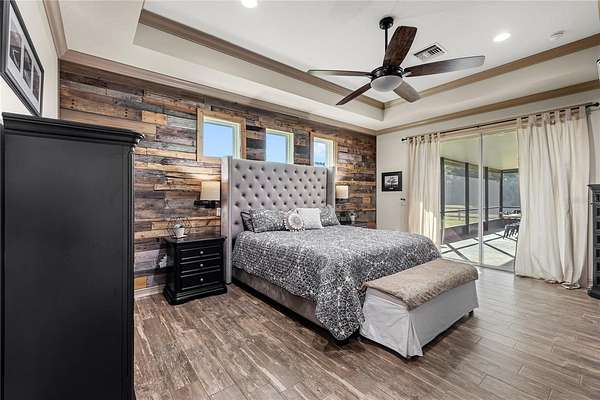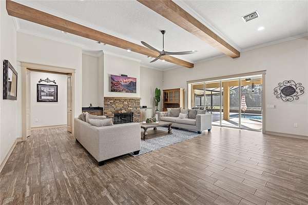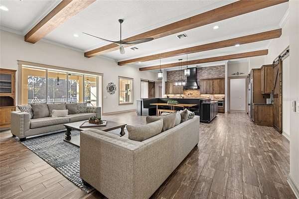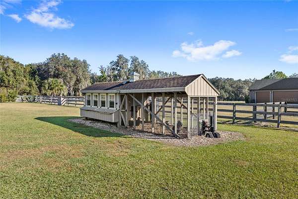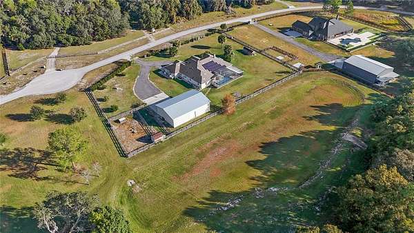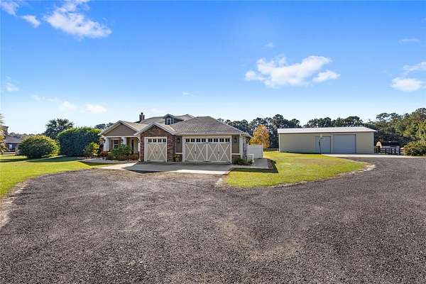 Welcome to 22220 Deer Park Avenue, a single-story custom estate set on 5 private acres with no HOA. Offering craftsmanship and privacy, this single-story 4,100 sq.ft. pool home blends timeless Craftsman architecture with modern, high-efficiency features, PLUS trails for ATVs, a creek, and even your own shooting range. A wide, welcoming front porch leads you inside, and you enter into an oversized great room with soaring ceilings, exposed beams, a wood-burning fireplace, and a full view straight out to the pool and expansive lot. Natural light pours in from large windows and the pocket sliding glass door, allowing the living space to open completely to the lanai. The chef's kitchen overlooks the great room. It features a 13-ft island, custom built-in banquet, a professional gas range with pot filler, a drawer microwave, a 6-foot refrigerator, 3 dishwashers, and soft-close solid wood cabinetry. Just off the kitchen is the hidden walk-in butler's pantry, a separate space with additional counters, lower cabinets, and open shelving that easily accommodates all your storage and prep needs. Adjacent to the kitchen and great room is the dedicated laundry room, featuring upper and lower cabinetry, countertops and custom-built dog crates. The layout of this home is the best part, and understanding the functionality of the layout is simple: this home was designed with a true three-way split floor plan. The home offers 2 primary suites, making the home ideal for multi-generational living. On the left side of the home, you'll find the main primary suite, measuring 15ft by 19ft. This space includes its own exercise room, a custom walk-in closet with built-ins, and a large en-suite with dual vanities, a soaking tub, a frameless shower, and 2 water closets. The secondary primary suite sits privately on the right side of the home, behind a barn door and includes its own living room. The connected bedroom and private full bathroom make this a perfect retreat for aging parents, guests, or adult children. The right side of the home features the guest wing. The guest bedroom closest to the garage entry has its own private en-suite bathroom. Guest bedrooms 2 and 3 sit behind the kitchen and share a full bathroom with dual sinks. This wing also includes a dedicated mudroom and a large laundry room with storage. This home features endless upgrades, including: extensive custom trim work, and window and door casings throughout. The dedicated office is situated at the front entry of the home. The fully screened resort-style pool features a large sun shelf and three water features. The home is packed with upgrades to maximize efficiency. Highlights include paid-off solar panels, Icynene insulation, 2 A/C units, a whole-home water filtration system, 2 gas tankless water heaters, 2 EV chargers, and a brand NEW whole-home generator. The entire home is fully wheelchair accessible. The property includes a massive 2,000+ sq.ft. workshop with pre-plumbing for a bathroom and RV-height roll-up doors, making it ideal for boats, RVs, ATVs, lawn equipment, or a full workshop setup. Zoning allows horses, chickens, goats, and more. A portion of the 5 acres is already fenced. Despite its privacy, the location is convenient. You are less than 10 minutes to Publix, 15 minutes to the Wekiva Parkway with easy access to Lake Mary, Sanford, Winter Garden, or The City of Orlando, and just 20 minutes from downtown Mount Dora. Call today to schedule a private tour.