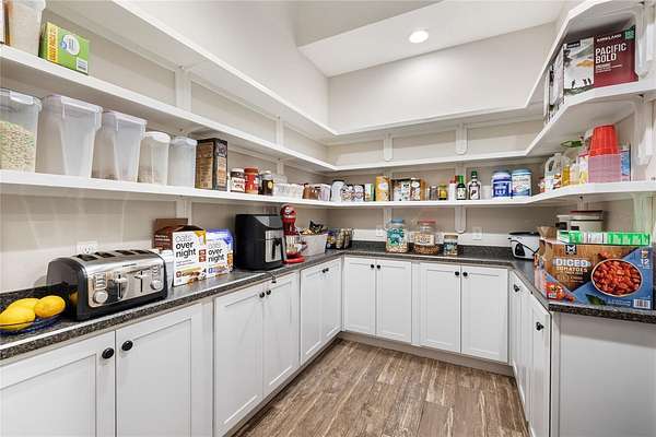 - Built-In Features, Ceiling Fans(s), Crown Molding, Eat-In Kitchen, High Ceilings, Kitchen/Family Room Combo, Open Floorplan, Primary Bedroom Main Floor, Solid Surface Counters, Solid Wood Cabinets, Split Bedroom, Walk-In Closet(s)