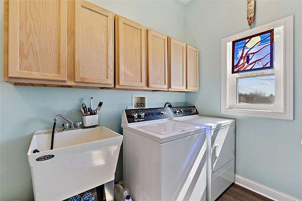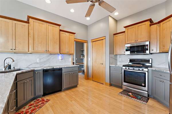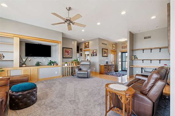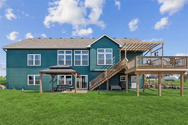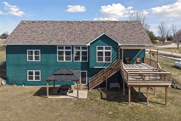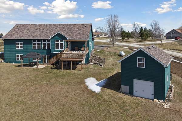 This exceptional walkout ranch presents an extraordinary opportunity for those seeking space, comfort, and country charm. Situated on over four and a half acres of stunning Iowa countryside, the home boasts more than three thousand square feet of beautifully finished living space with four bedrooms and four bathrooms. The open floorplan and wall of windows make the main level light, bright and inviting. An extra large mudroom keeps daily routines organized, with plenty of room for sorting laundry and additional storage. There's also a dedicated office - perfect for those working from home. The lower level is thoughtfully designed for multi-generational living, complete with a private bedroom, full bathroom, kitchenette, laundry hook-ups and an additional half bath, while dedicated workshop space will delight the hobbyist in your household. And there's so much storage space! Step onto the brand-new deck and enjoy breathtaking sunsets that never disappoint. Recent updates, including a newer roof, windows, heating and cooling system, and radon mitigation, deliver exceptional peace of mind. A two-level storage shed provides even more functionality. Conveniently located near Hwy 92, this property truly has it all. Schedule your private showing today.