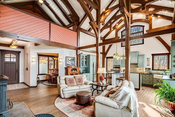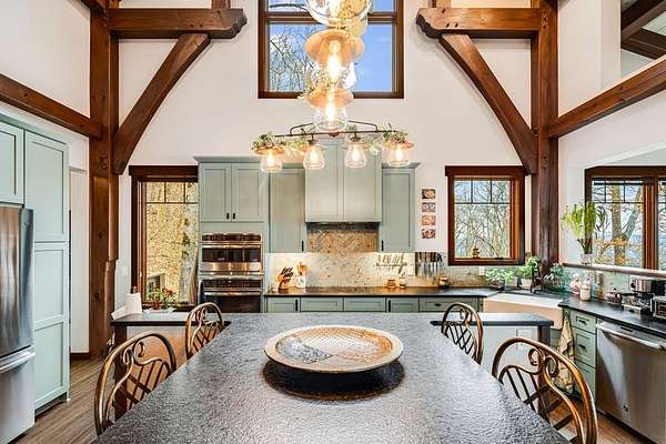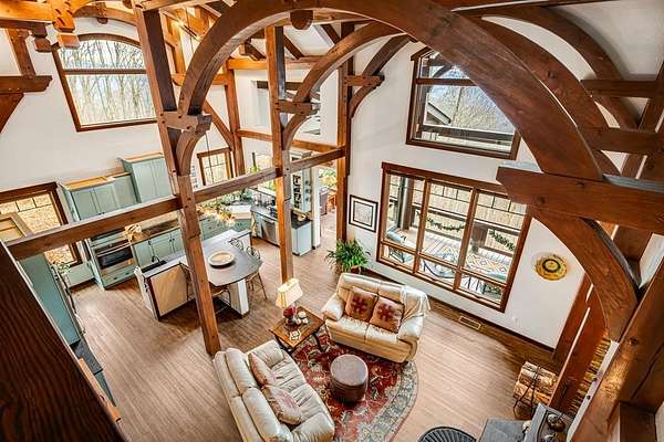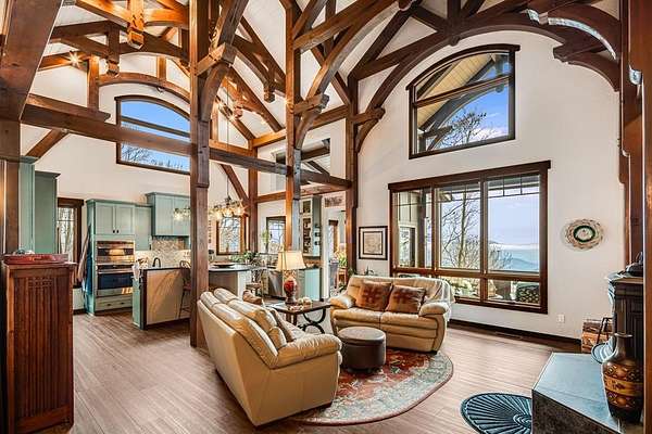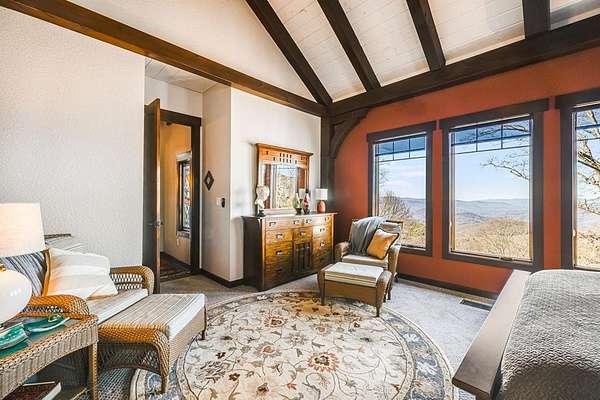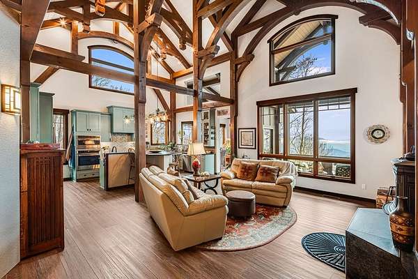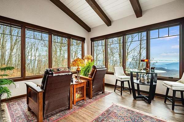 Perched at a rare 4,000-foot elevation and bordering 39,000 acres of Nantahala National Forest, 2223 Scarlet Ridge is a masterfully crafted mountaintop estate where architecture, engineering, and nature exist in perfect harmony. Designed to capture sweeping long-range views while remaining naturally protected from extreme weather, the home enjoys cooler summer temperatures, dramatic cloud inversions below, and exceptional privacy. This handcrafted timber-frame residence features cathedral ceilings, exposed beams, and seamless indoor-outdoor living that reflects timeless craftsmanship and respect for the landscape. Built for longevity and performance, the home includes a reinforced concrete foundation, energy-efficient structural systems, high-performance windows, and advanced mechanicals designed specifically for high-elevation living. Set on 17.72 private acres with trails, open meadow, and direct access to protected wilderness, the property offers an extraordinary connection to nature. From expansive terraces to sweeping 40+ mile views, this is a mountain retreat as intelligent as it is breathtaking.