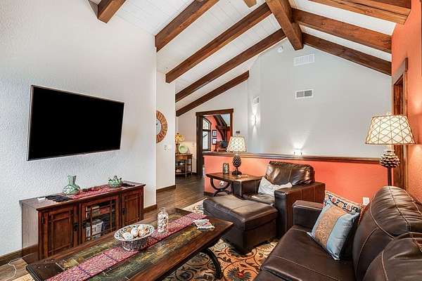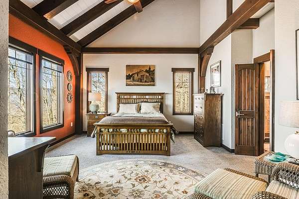 - Breakfast Bar, Cathedral/Vaulted Ceiling, Ceiling Fan(s), Ceramic Tile Bath, Formal Dining Room, Kitchen Island, Large Master Bedroom, Main Level Living, Open Floorplan, Pantry, Primary On Main Level, Primary W/Ensuite, Rec/Game Room, Split Bedroom, Walk-In Closet(s)