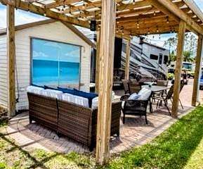 PRICE REDUCTION!!! This primo lot in the luxury motorcoach section of the Deer Creek is once again available after being rented last season. Snag it for your own use or as income property -- either way it's a sweet lot located at the western end of St George Dr. This 45'x92' lot has brick pavers and is beautifully landscaped with easy-care native plantings. It has 50amp service, water & sewer connections, a pergola strung with lights and shades, vinyl storage shed, patio set and a completely finished shed with 1/2 bath. The camp-shed is simply perfect, featuring two camp beds, window a/c, portable heater, mini-fridge, microwave, rug and decor. Even the doors are unique, having been hand-painted by the seller in a pleasing sea-scape design. A large gazebo with patio set, lighting and easy-to-position shades await, perfect for BBQ & cocktail hour. Located in Regal Pointe, the Class A luxury motorcoach section of Deer Creek RV & Golf Resort, this lot is a gem. At 92+' long, it is exceptionally deep, allowing plenty of room for a port and/or future casita. This one-of-a-kind lot provides both indoor and outdoor options beyond the large RV parking area. Deer Creek is a golf cart friendly community and offers many activities and amenities, including a large community pool, hot tub, tennis, pickle ball and shuffleboard courts, tiki bar, and the signature 18-hole executive golf course. Deer Creek has an activities director who coordinates all types of activities and events from cruises to day trips to concerts, card games, water volleyball, numerous golf scrambles, etc. Regal Pointe, one of six communities within Deer Creek, has its own pool and clubhouse with a large community room, workout facility, laundry center. The community is well-situated with easy access to banks, shopping, restaurants and more. The Orlando international airport, the VA hospital and the area theme parks are also within a 20-40 minute drive. Call to make an appointment to tour the community and this unique property.