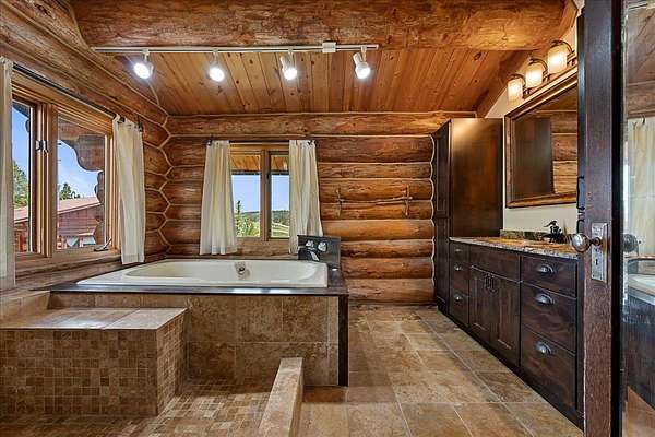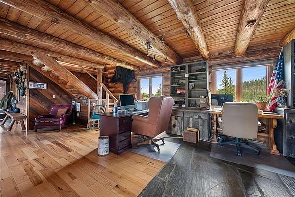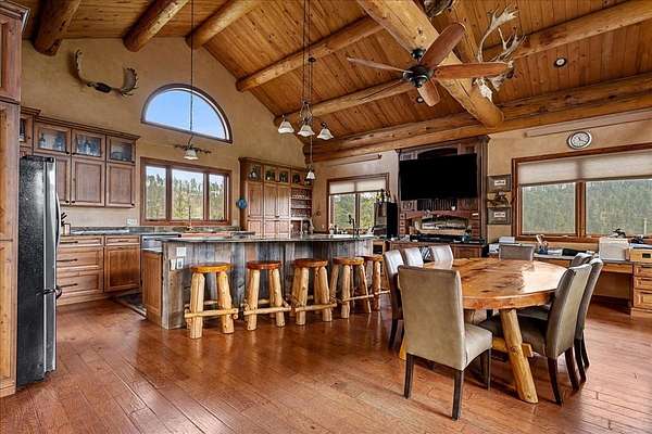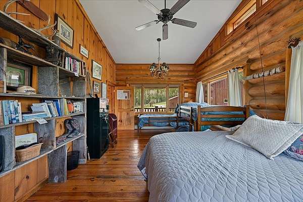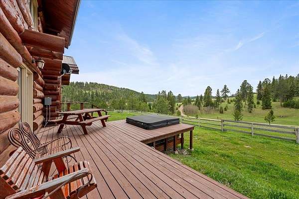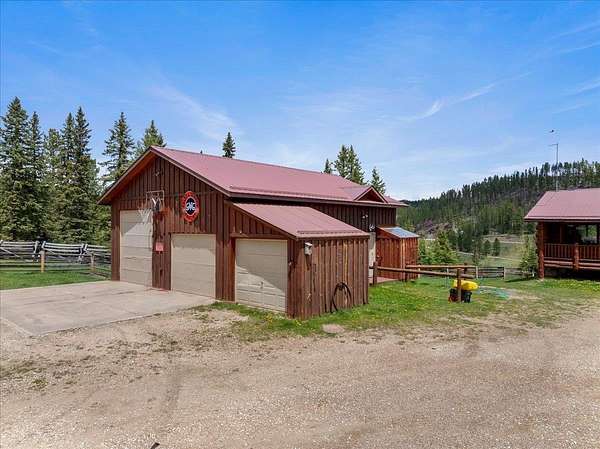 Listed by Jeff Lawler & Lori Barnett at Engel & Volkers Black Hills 605-786-5817. Welcome to a rare opportunity to own a one-of-a-kind retreat nestled on approximately 21.58 acres of pristine Black Hills landscape. This extraordinary property features a stunning 3,158 sq ft custom log home, thoughtfully designed with a warm, refined mountain aesthetic. Inside, you'll find soaring ceilings, a stone fireplace, & an executive chef's kitchen flowing seamlessly into the great room, ideal for entertaining or quiet nights by the fire. The upper level includes a spacious primary suite with a tiled walk-in shower, jetted tub, & serene forest views. A second bedroom, full bath, & a lofted exercise area complete the upper floor. Downstairs, enjoy a climate-controlled wine cellar that adds the perfect touch of sophistication. A second home offers over 2,700 sq ft of additional living space with three bedrooms, ideal for guests, multigenerational living, or income potential. Outbuildings include a barn & detached garage, giving you plenty of space for toys or animals. Nature lovers & outdoor enthusiasts will appreciate direct access to the Mickelson Trail, stretching over 100 miles of scenic pathways. North Fork Rapid Creek meanders along the edge of the property, feeding a tranquil pond & inviting wildlife year-round. With National Forest bordering two sides, this is a private haven that feels miles away from it all, yet close to everything that makes the Black Hills extraordinary.