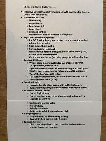 Smart, value-adding upgrades include: whole-house generator, Trane split HVAC (2022), full ductwork replacement, encapsulated crawlspace with dehumidifier, sump pumps, French drains, upgraded electric panel, and a refinished garage with resin-epoxy floor.