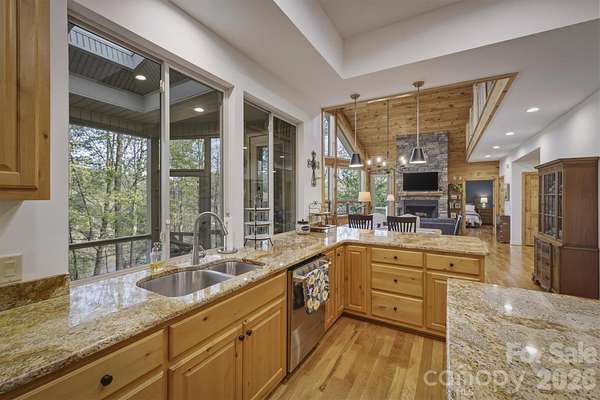 Welcome to 2224 West Paradise Harbor Drive, an exceptional lakefront retreat tucked away in the highly sought-after Paradise Harbor community. Surrounded by natural beauty and unmatched privacy, this property offers a peaceful and elevated lifestyle on the lake. Enjoy direct water access from your private dock, boasting deep water with approximately 12 feet at the front and 18 feet at the rear of the dock. A well-maintained path leads conveniently from the home to the shoreline, where rip rap has been installed to ensure long-term stability and ease of access. Inside, the home is filled with natural light and breathtaking lake views, enhanced by striking oversized windows and soaring ceilings reaching up to 23 feet in the great room. The home has been exceptionally well maintained and thoughtfully cared for throughout. The main level features a wonderful primary suite with a fully remodeled bathroom, along with an additional bedroom and a second full bath that has also been recently updated. The kitchen is spacious and beautifully appointed with extensive custom cabinetry, abundant natural lighting from a skylight, and sweeping lake views. It is well-equipped with a gas range, convection oven/microwave, and under-cabinet lighting that enhances both functionality and ambiance. Step out onto the screened porch and unwind while taking in serene water views that are perfect for quiet mornings or relaxing evenings. One of the most captivating spaces in the home is the expansive loft. Located above the great room, it offers panoramic lake views! The loft is complete with a full bath and two cedar-lined closets, making it versatile and unforgettable. The finished basement expands your options with a private bedroom and a full bath featuring a recently remodeled shower, along with a kitchenette complete with a bar sink and beverage cooler; ideal for entertaining guests or multi-generational living. Car enthusiasts, hobbyists, and those in need of extra storage will appreciate the impressive oversized garage, featuring insulated doors (two 10-foot-wide doors and a third 12-foot-wide by 11-foot-tall door). With ceiling heights reaching up to 17 feet, there is ample space for boats, RVs, and more. This is a rare opportunity to own a private, lakefront property with stunning views, thoughtful updates, and exceptional garage space. All within one of the area's most beautiful and tranquil communities, conveniently located about an hour from both Charlotte and Asheville.