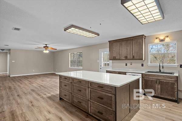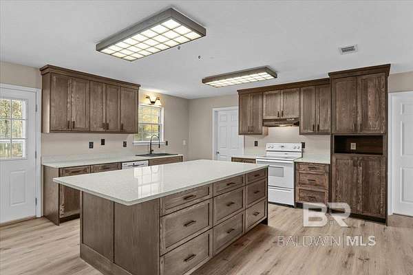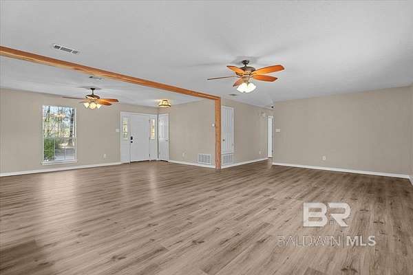 Tucked away on a beautifully private 6.9 acres in Robertsdale, this flexible property offers space, comfort, and room to breathe. The home features an open, easy-flow layout designed for both everyday living and effortless entertaining. An updated kitchen anchors the space with generous cabinetry and a large island perfect for prepping meals or gathering with friends.Outside, you'll find multiple spacious pole barns providing ample covered storage, possible work space, or room for hobbies and equipment. Enjoy shared access to the pond and take in the quiet surroundings that make country living so appealing.With convenient access to Highway 59, the Baldwin Beach Express, and I-10, you're just a short drive from area beaches, nearby towns, and everyday amenities--while still enjoying the privacy and pace of rural life. Buyer to verify all information during due diligence.
