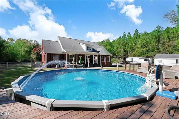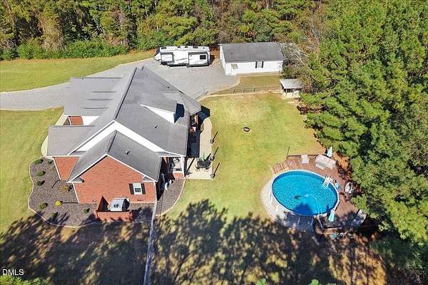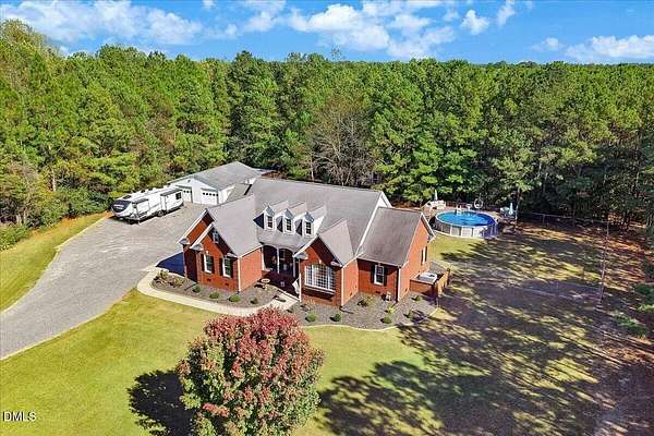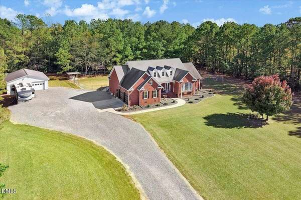 The luxury property you've been waiting for on over 4 private acres, this stunning all-brick estate offers classic elegance & modern, high-end finishes that you simply must see to appreciate. From the moment you walk in, you are greeted with lighting that perfectly complements the entire home. The spacious family room features soaring ceilings & gas log fireplace, creating an ideal setting for gathering. The heart of the home is a true Chef's Dream Kitchen, showcasing gorgeous Quartz countertops, sleek Stainless Steel Appliances, Pantry & an abundance of cabinet storage. With its massive breakfast bar, feeding a crowd will never be an issue. Enjoy your morning coffee in the sunny breakfast nook area with charming window seating. The main level boasts a Luxurious Owner's Suite with a generous walk-in closet and a spa-like bath featuring a large, luxury walk-in tile shower and dual vanity. You'll also find two additional bedrooms downstairs & a functional laundry room equipped with a sink & extra cabinet space. Recent updates include fresh paint and new laminate flooring throughout the main living areas. Above the main floor, a massive 800+ square foot bonus space awaits your vision. This area is already prepped with plumbing, electrical, and HVAC, offering limitless potential for a home theater, gym, or additional suite. The exterior is designed for both relaxation and entertaining, starting with the 2-car attached garage featuring luxurious black doors & gold hardware. The home also features a sealed crawlspace for efficiency. Enjoy nature in your own private yard from the charming covered front & back porches. For outdoor living, there's a large concrete patio perfect for grilling, & a beautiful above-ground salt-water pool surrounded by a large deck. As a bonus, a 2-car detached garage provides incredible space for extra storage or a place to bring all of your to life. If you have been dreaming of a home like this one you need see this one today!