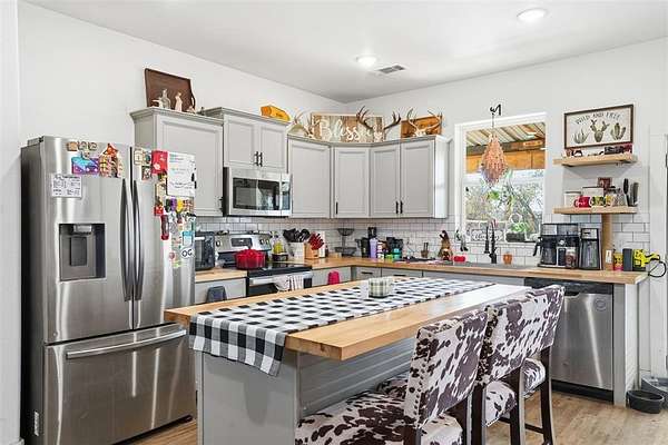 Est $2,566/moBarndominium in Springtown ISD! Well thought out floor plan with a super cute kitchen and living space. Back yard has tons of room for a workshop or whatever you can dream up. No HOA and no worries here! Come make this place your own.