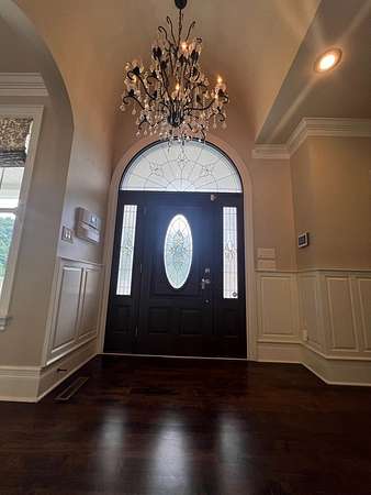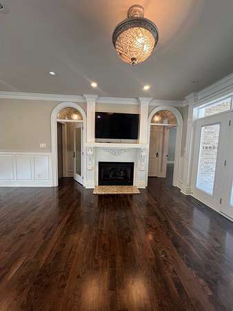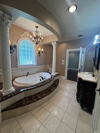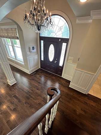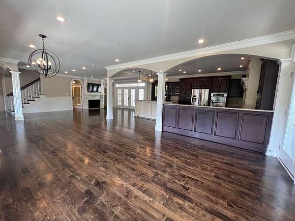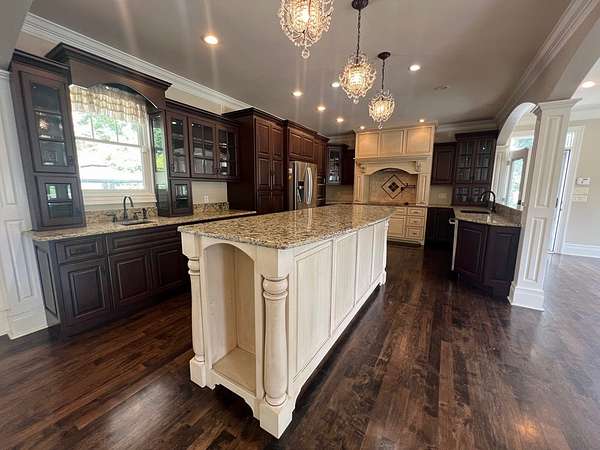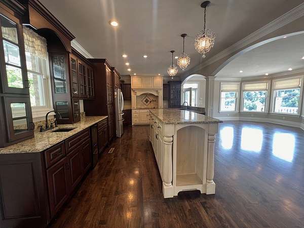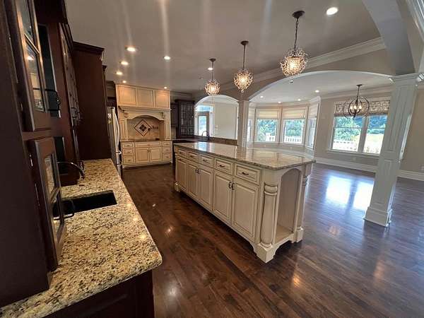EXQUISITELY LUXURIOUS HOME!! Indulge in unmatched luxury w/this stunning home, featuring an open floorplan designed for modern living. The expansive great room, w/a cozy gas fireplace & elegant hdwd flooring, flows seamlessly into the dining area and custom chef's kitchen. The kitchen boasts a grand island, cherry cabinetry, granite countertops, and a wet bar--perfect for entertaining! With primary suites on both the 1st and 2nd levels, each offering spa-like en suite baths, this home redefines comfort. Attention to detail shines throughout w/solid wood doors, crown moulding, columns, marble finishes. Finished, partial basement and more!