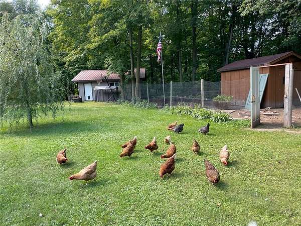 With an excellent location and truly stunning acreage, this sweet homestead is ready for new owners! Complete with a chicken coop and resident chickens and a fabulous fenced garden already flourishing with fruit trees, honeyberries (haskaps), blueberries, gooseberries, asparagus, rhubarb & strawberries! An outdoor wood furnace, extra 2-car detached garage, and firepit round out the outdoor amenities. Inside you'll find a completely updated main floor full bath, refreshed kitchen with new countertops, a wood-burning fireplace, and plenty of closets and storage options throughout. There are 2 bedrooms & a full bath on the main floor and a bedroom & partial bath downstairs. There were significant energy improvements made in 2025 - this place is clean, snug, tidy and well-kept! The setting is splendid and there are lots of opportunities for hunting and tapping maple trees right on your own land! Don't wait - come see and make your country dreams come true!