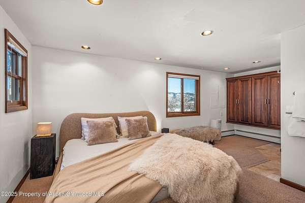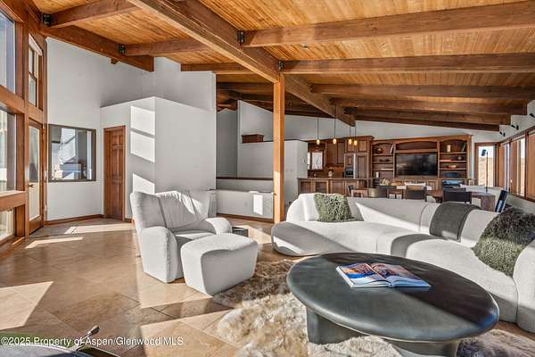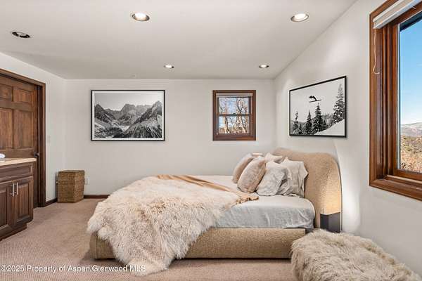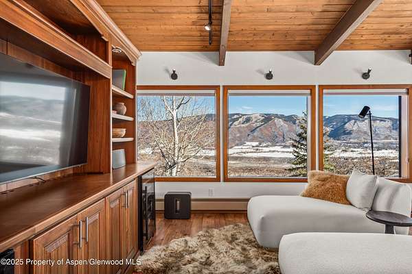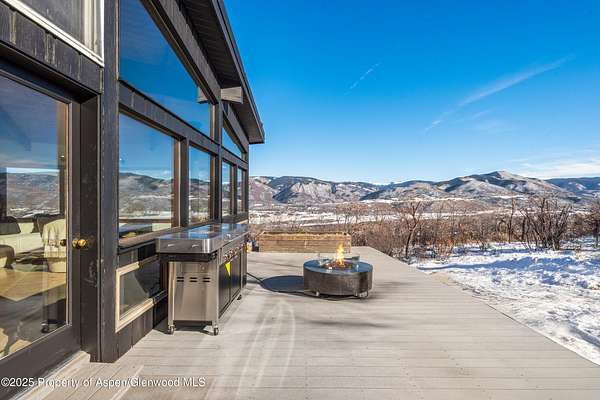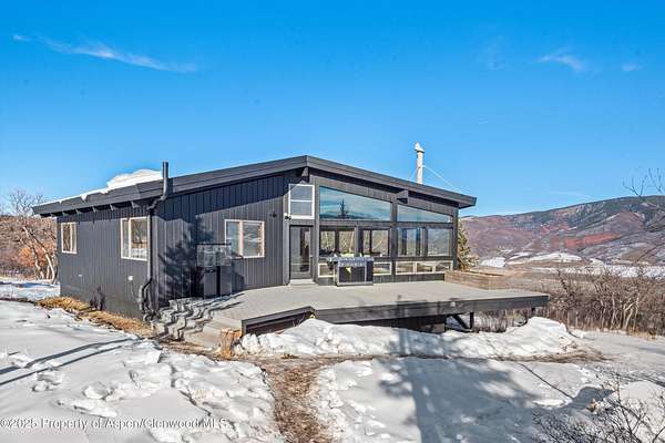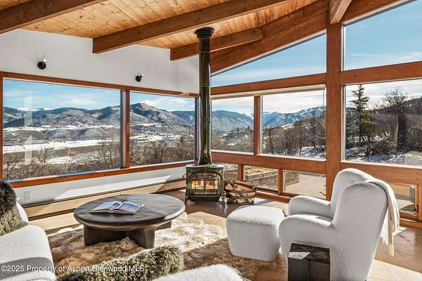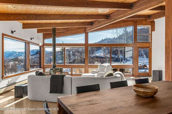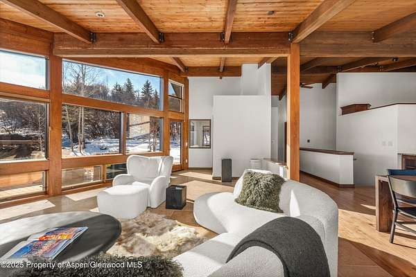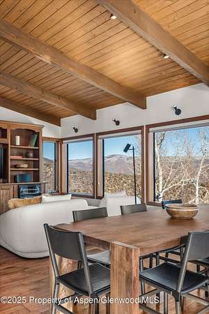 Perched on nearly four acres, this refined four-bedroom mountain retreat offers exceptional privacy and sweeping panoramic views of the surrounding peaks. Thoughtfully positioned to embrace the beauty of its natural surroundings, the home blends seclusion, comfort, and effortless access to the very best of the Aspen lifestyle. Impeccably curated, the residence has been completely reimagined and refurnished to deliver a true turnkey experience designed for effortless, elevated living. Every detail has been considered, creating a dialed-in rental experience featuring Italian bedding linens, Overland Sheepskins, Arhaus furnishings, plush towels, updated kitchenware with Smeg appliances, premium Dyson hair dryers throughout, Le Labo and Byredo bath amenities, Jolie showerheads, new Smart TVs-enhancing everyday comfort with understated elegance. Expansive windows flood the space with natural light while perfectly framing the surrounding mountain vistas, offering a sense of calm and connection to the landscape. The upper level showcases a spacious, fully stocked kitchen that flows seamlessly into the dining and living areas, creating an ideal setting for entertaining or quiet evenings at home enjoying the wood burning fireplace. Designed for year-round enjoyment, the outdoor living area features a generous deck with a firepit, offering the perfect setting to take in expansive views after a long day on the slopes or during warm summer sunsets. A resort-style spa area with a sauna, cold plunge, and hot tub is coming soon, elevating the experience of this private mountain retreat.